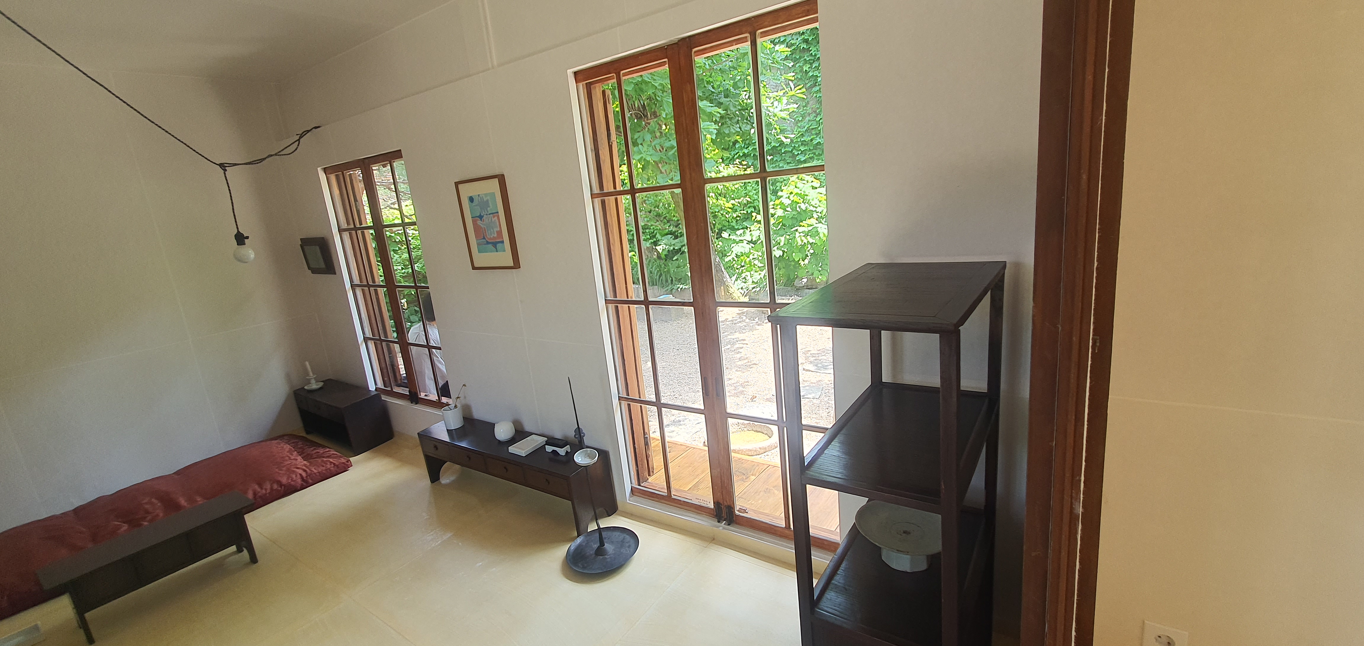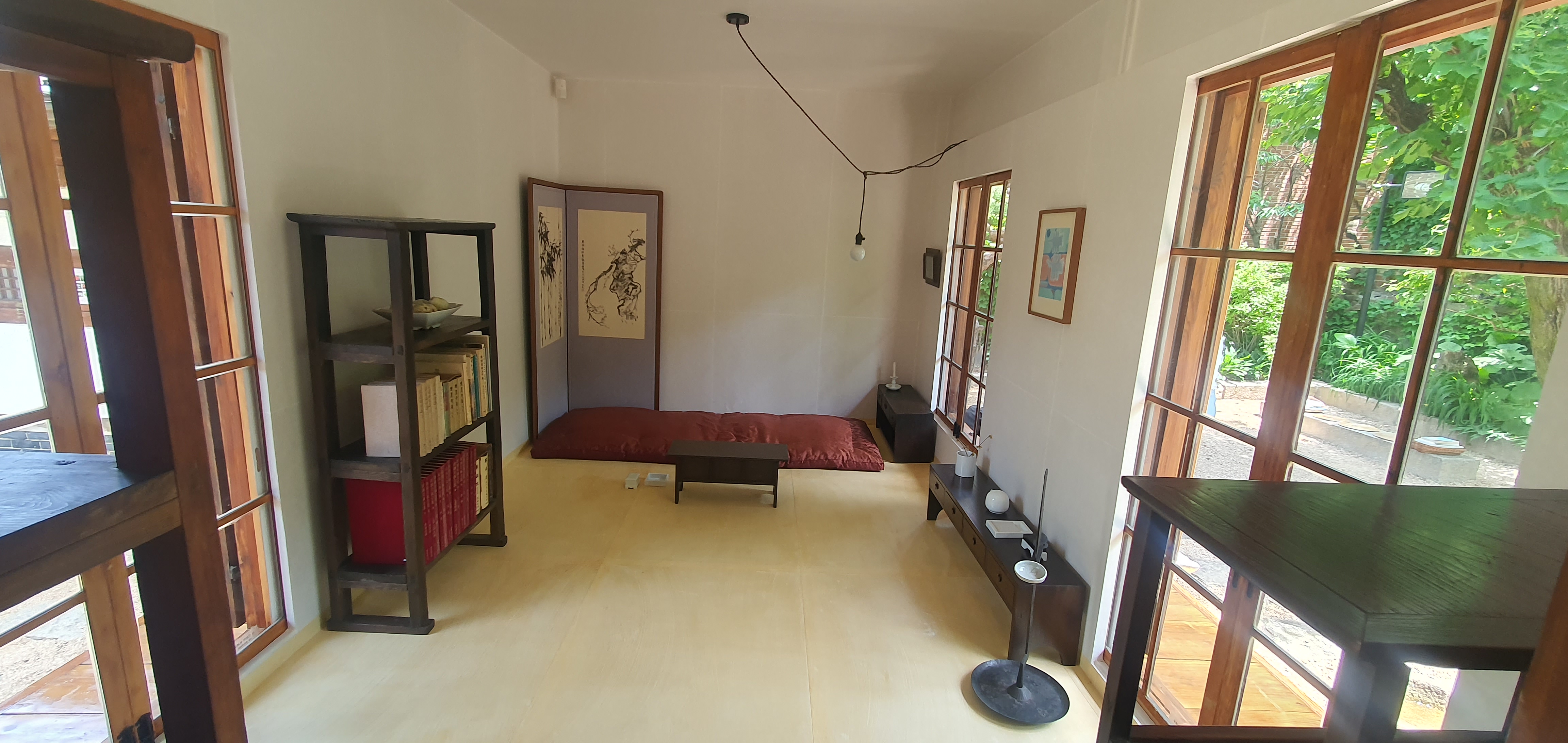 최순우 옛집 뒷뜨락ᆞ오수당(午睡堂) ~최순우는 단원 김홍도의 화첩에서 오수당 글씨를 찾아내고 그대로 집자하여 당호로 삼았다. 최순우는 한양도성 밖 성북동 이곳에서 '무량수전 배흘림기둥에 기대어서서'를 썼다. 최순우 옛집 안채뜰ᆞ'두문즉시심산' 현판 단옹 김홍도의 수하오수도 김홍도(金弘道)ㅡ수하오수도(樹下午睡圖) 제시.