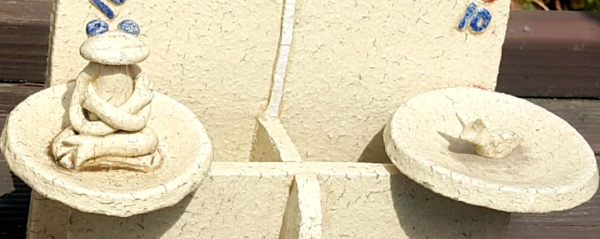 왼쪽 저울에 앉은 개구리 좀 보셔요. 눈동자와 왼손이 재미있는 이야기거리를 만들어 주네요. 잘난 척하지만, 미끄러질까봐서 불안해하죠. 그 모습을 아이들한테도 한번 보여주고 물어보세요.