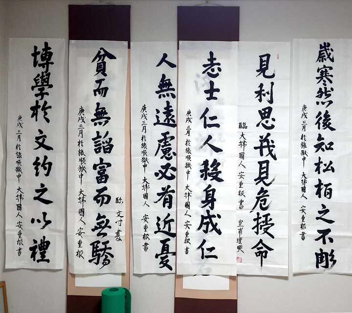 110 년전 뤼순감옥소에서 사형집행을 기다리던 안중근 의사, 그 절체절명의 시기에서도 붓을 들어 휘호하였다. 특히 <논어>의 명구가 많았다. 몇 해 전 흠모하는 마음으로 안의사의 유묵을 따라 써 보았다.