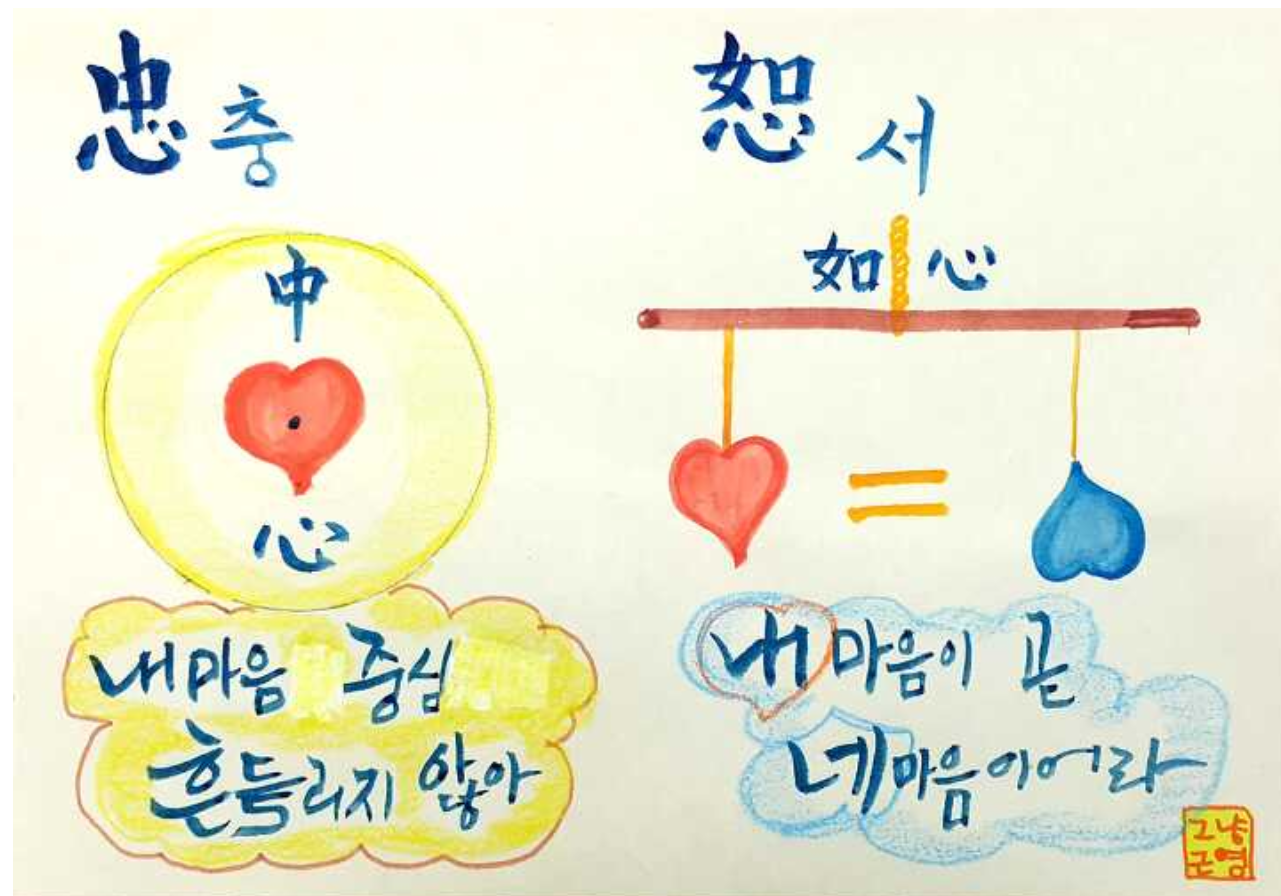 충ᆞ中+心~부동심 / 서ᆞ如+心~관용과 배려
