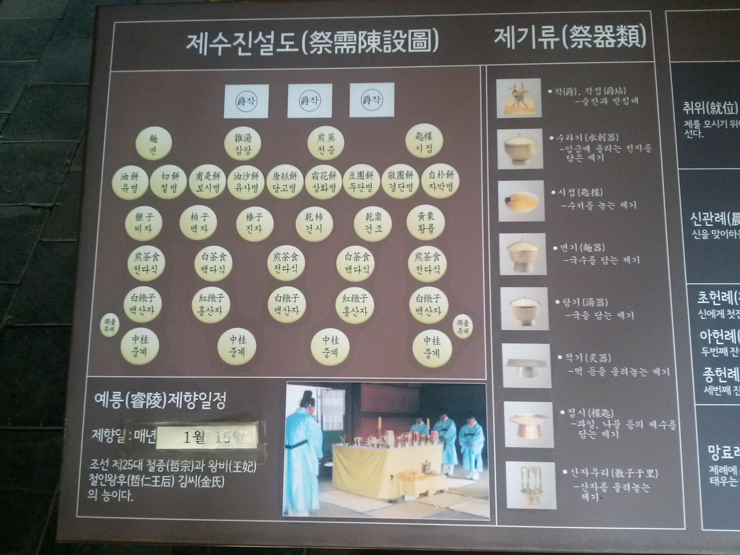 진입 및 제향공간에는 홍살문, 판위, 향로와 어로, 정자각, 비각이 배치되어 있다.