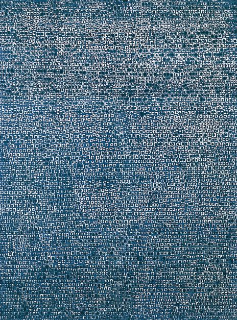 대표작 중 하나인 점화 ‘어디서 무엇이 되어 다시 만나랴'(1970). 미국에서 시인 김광섭의 ‘가짜 부고'를 듣고 애도하며 캔버스 가득 푸른 점을 채워 만들었다. /환기재단·환기미술관 제공