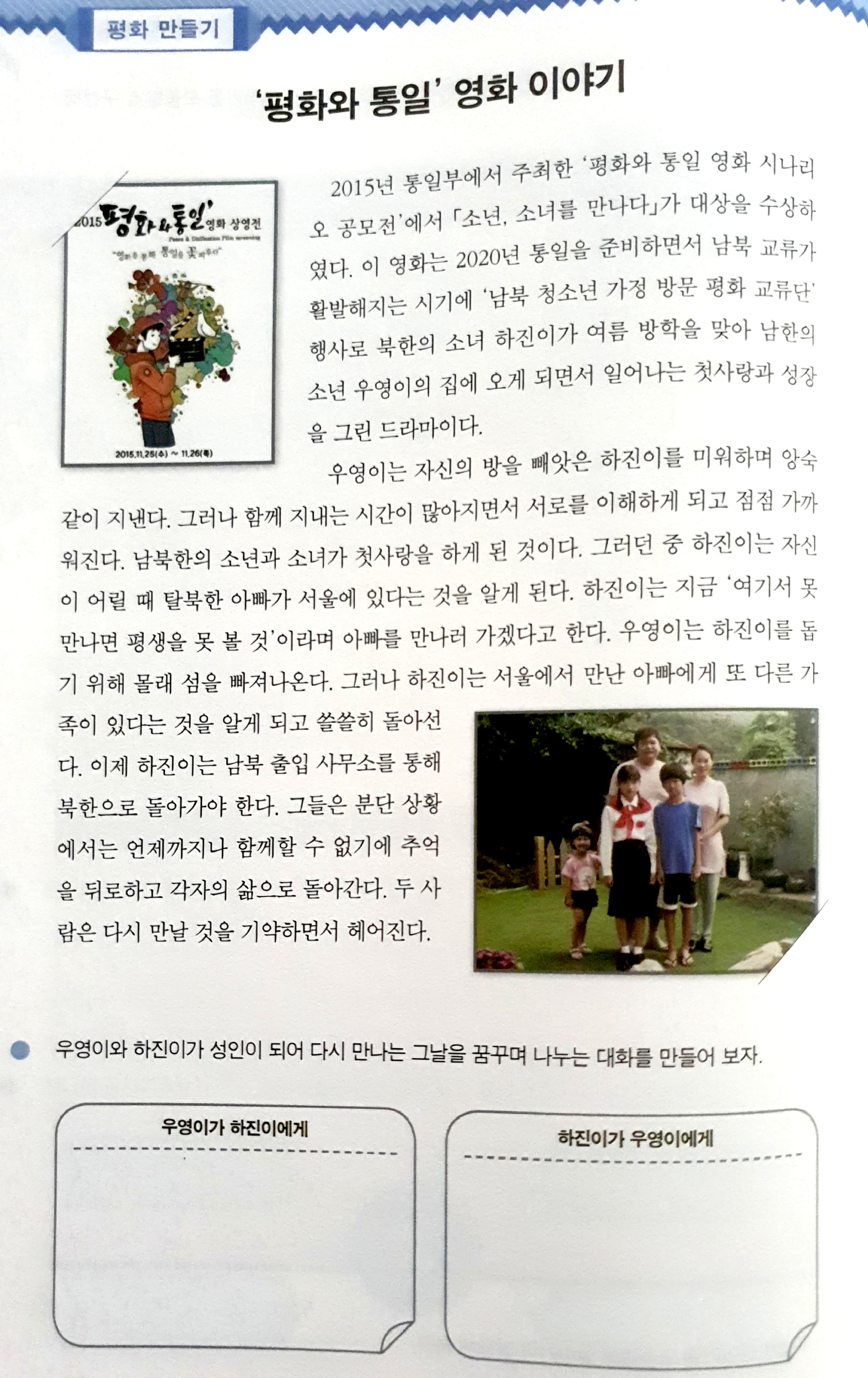 남북이 하나 되는 열쇠 ㅡ 한글그림편지 보내기