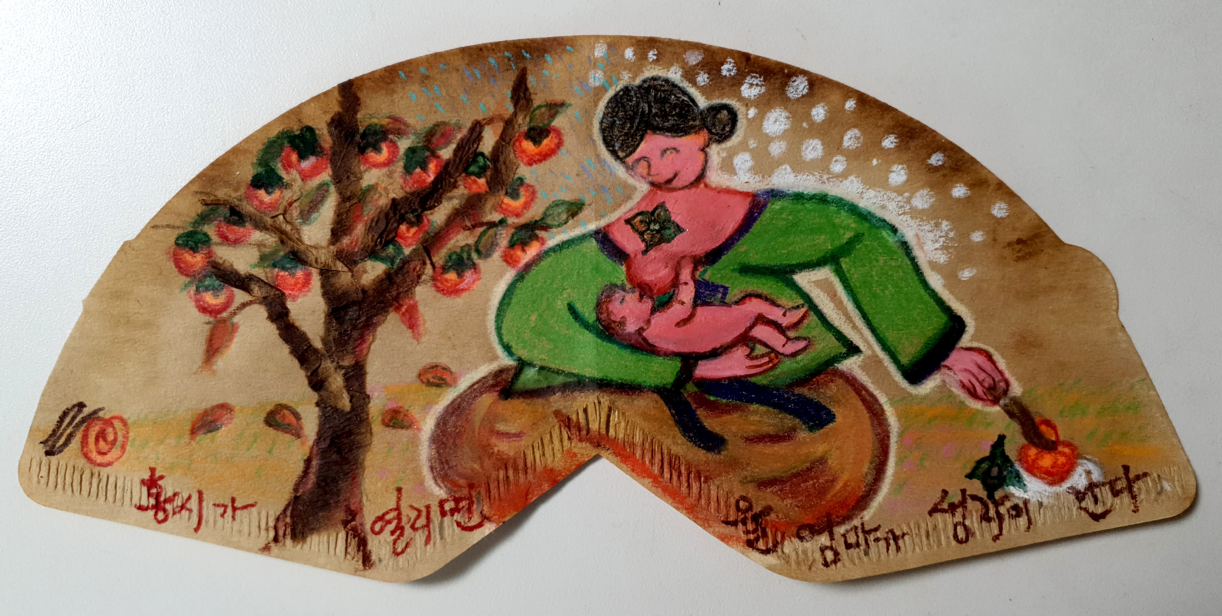 조선의 무인이자 시인인 박인로는 쟁반에 담겨온 홍시를 보며 엄마 생각에 젖었다. 옛날 어린 육적이 엄마를 위해 귤을 몰래 품었다는 고사도 떠올렸건만 어머니는 이미 돌아가셨기에 효를 다하지 못한 그 설움을 읊었다.