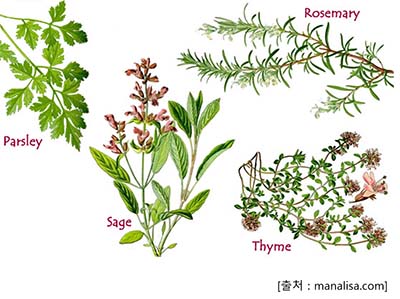 파슬리, 샐비어, 로즈마리, 백리향