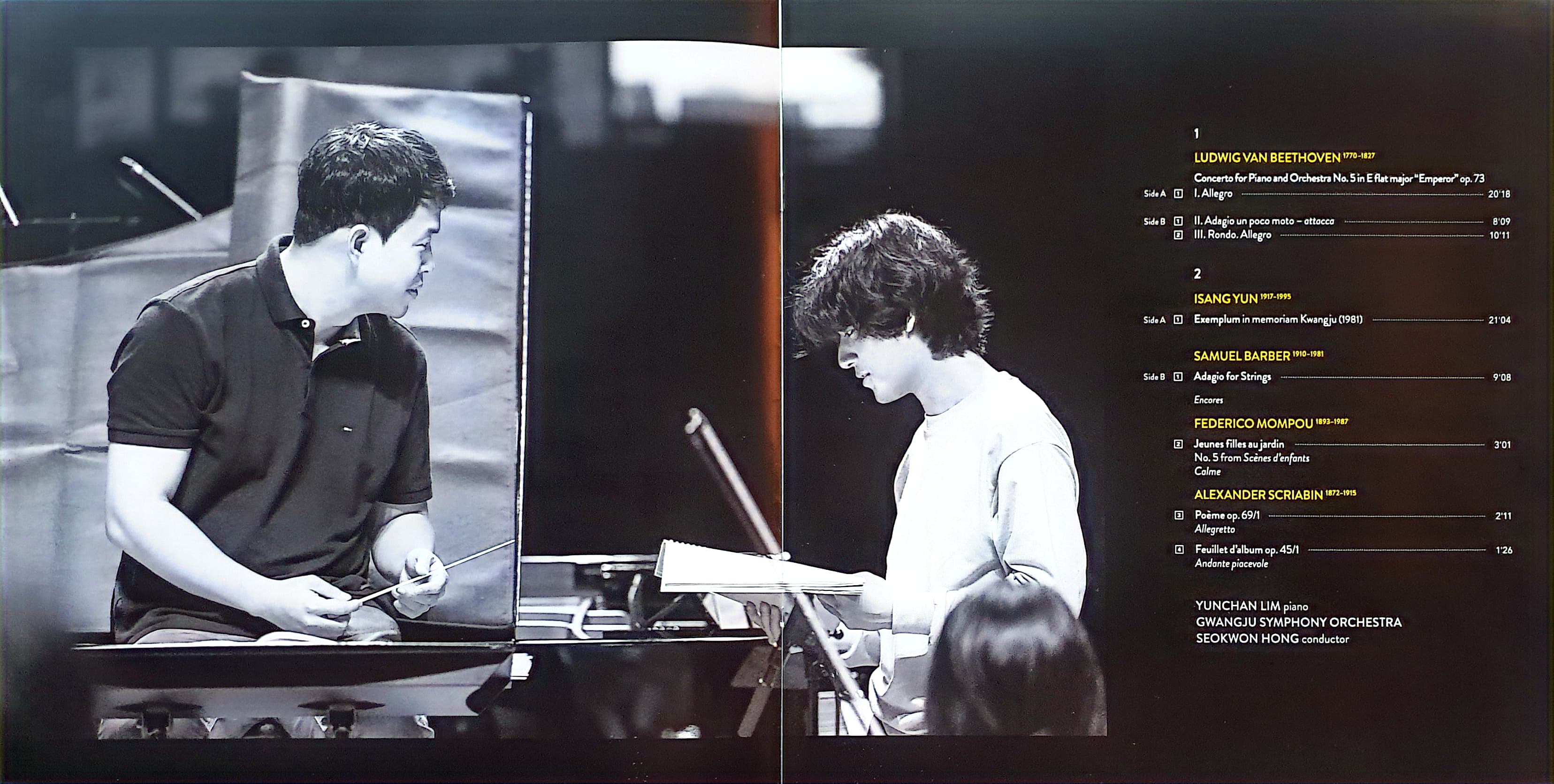 반 클라이번 국제 피아노 콩쿠르의 최연소 우승자 임윤찬의 연주에는 당연히 희망이 담겨 있다. 이번 라이브 실황 앨범은 베토벤 <피아노 협주곡 제5번>협연에 이어진 3곡의 명상적인 앙코르로 마무리된다. 첫 앙코르곡은 카탈루냐 출신 작곡가 페데리코 몸포우의 첫 피아노 소품집 <Scènes d'enfants> (1915-1918)에 담긴 5곡 중 마지막 곡 <Jeunes filles au jardin>(정원의 소녀들)이다. '젖은 풀밭의 싱그러움'이라는 표기처럼 감상용 살롱 음악을 넘어 조용히 노래하듯 연주한다.
