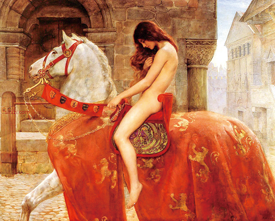 "앗, 애마부인 누드화?" 아니, 귀족 부인의 나신성인(裸身成仁)을 이야기 하려한다.천년도 더 묵은 옛날 이야기이다. 그림 속의 주인공은 고디바(Godiva, 990년경~1067년). 중세 머시아 왕국(현재의 잉