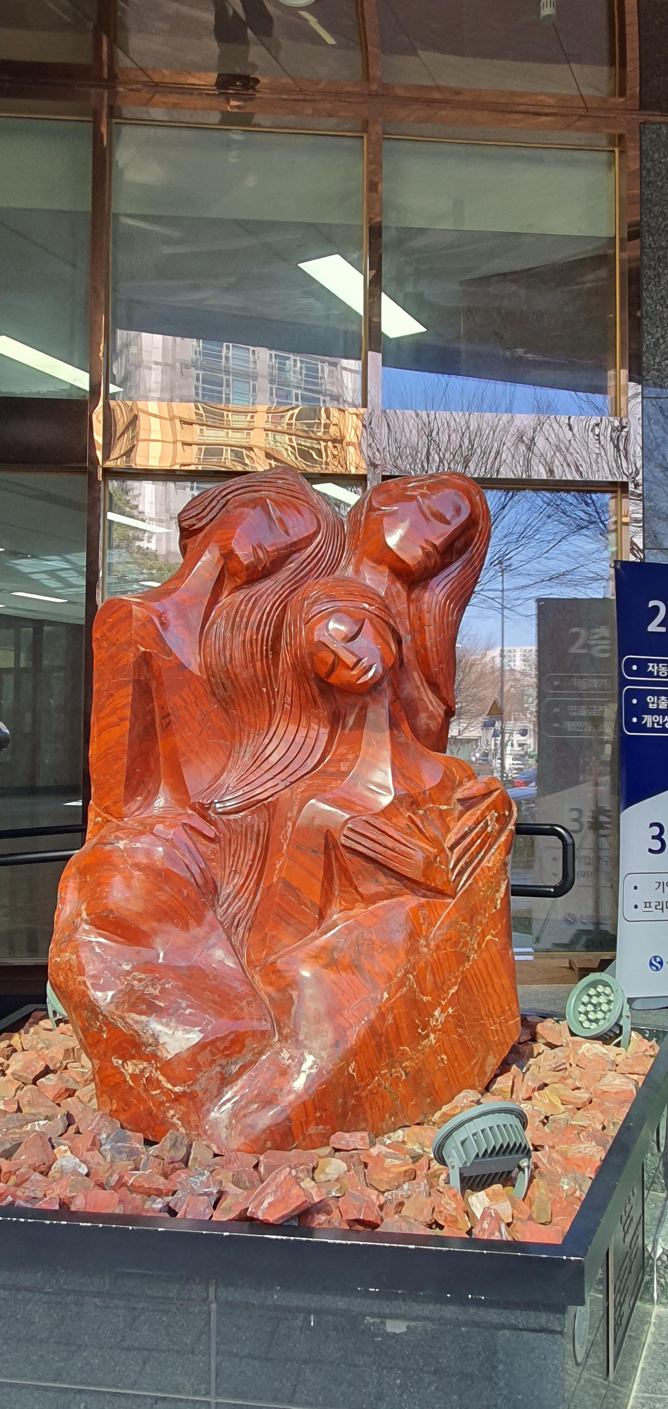 봄의 시작으로 만세라도 부르고 싶은 삼일절. 참 좋은 평화팀 친구들과 이수역 가까운 식당에서 만나기로 했다. 이수역 5번 출구를 나오자마자 오른편 건물 구산빌딩 앞과 뒤의 화단에는 조각석상이 많았다. 차가운 돌이지만 사랑의 온기가 전해지며 아름다웠다.