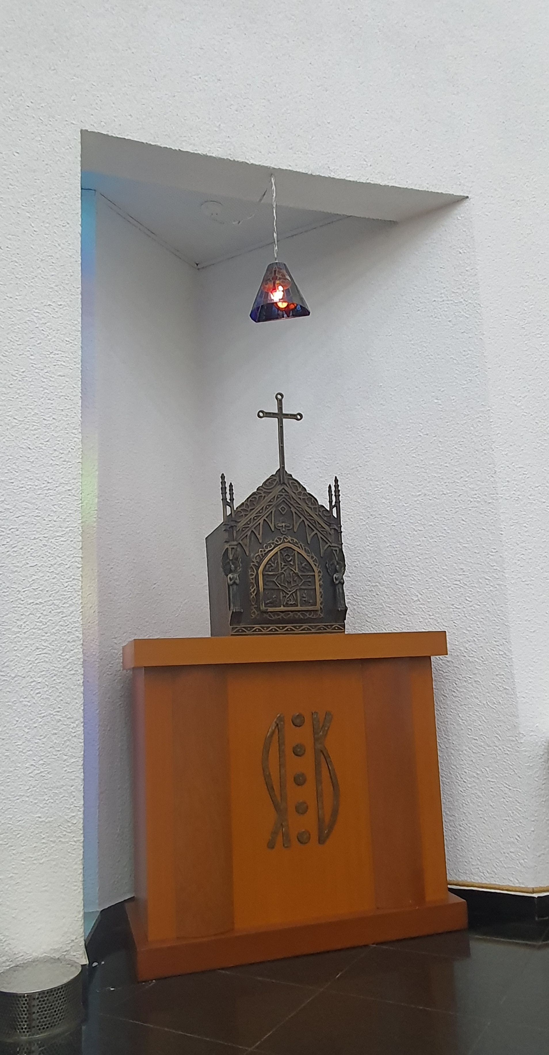부천 중2동 성당의 감실은 특별히 감실단 위에 올려져 있는데, 감실단의 문양이 궁금증을 일으키며 눈에 띠었다.