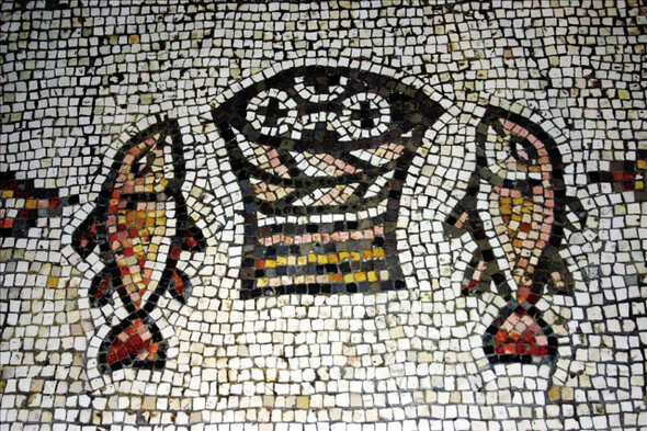 감실단의 문양은 오병이어(五餠二魚)를 상징한다.