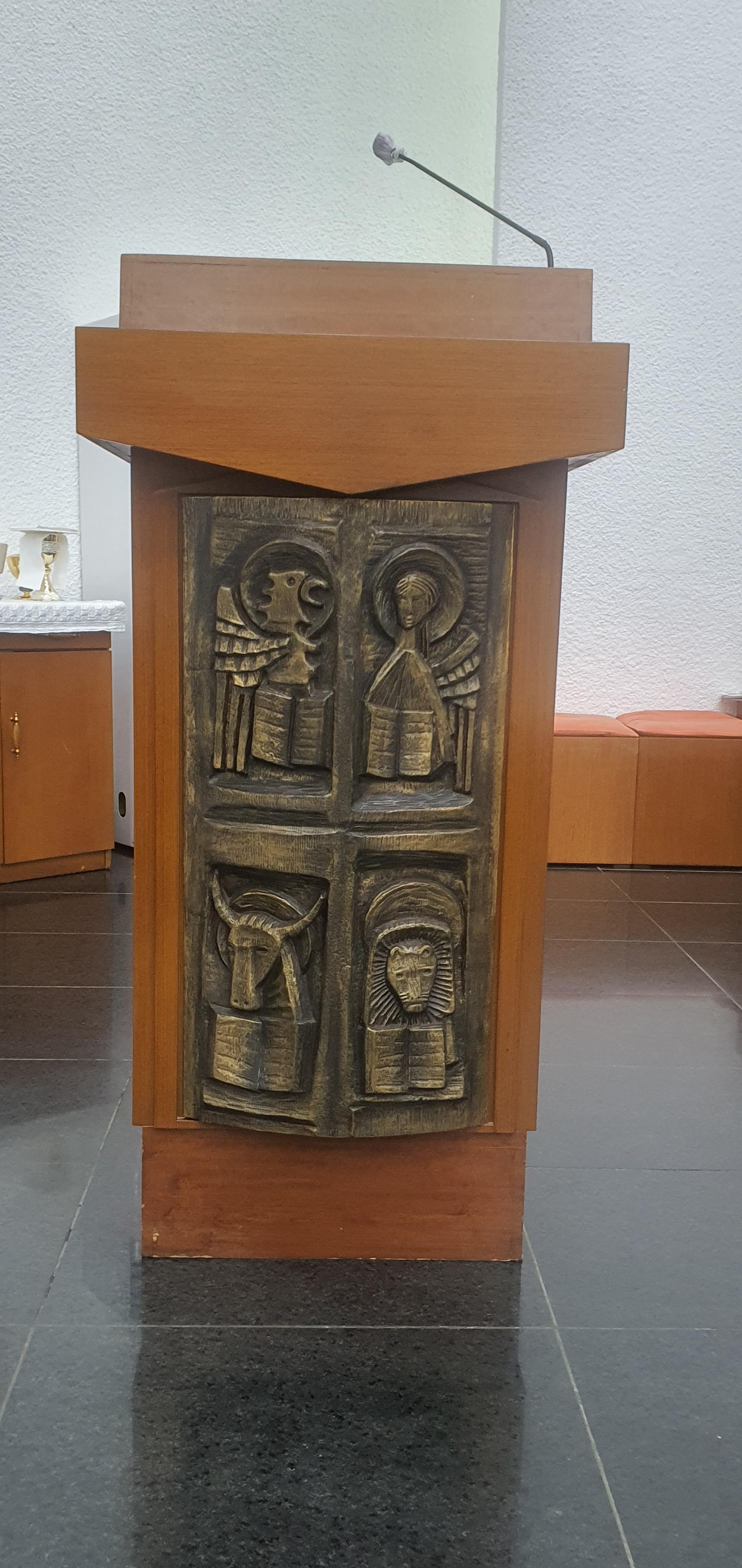 독서대 단상의 4개의 부조문양은 4대복음사가를 상징한다. 요한은 독수리, 마태오는 사람, 루가는 황소, 마르코는 사자로 상징한다.