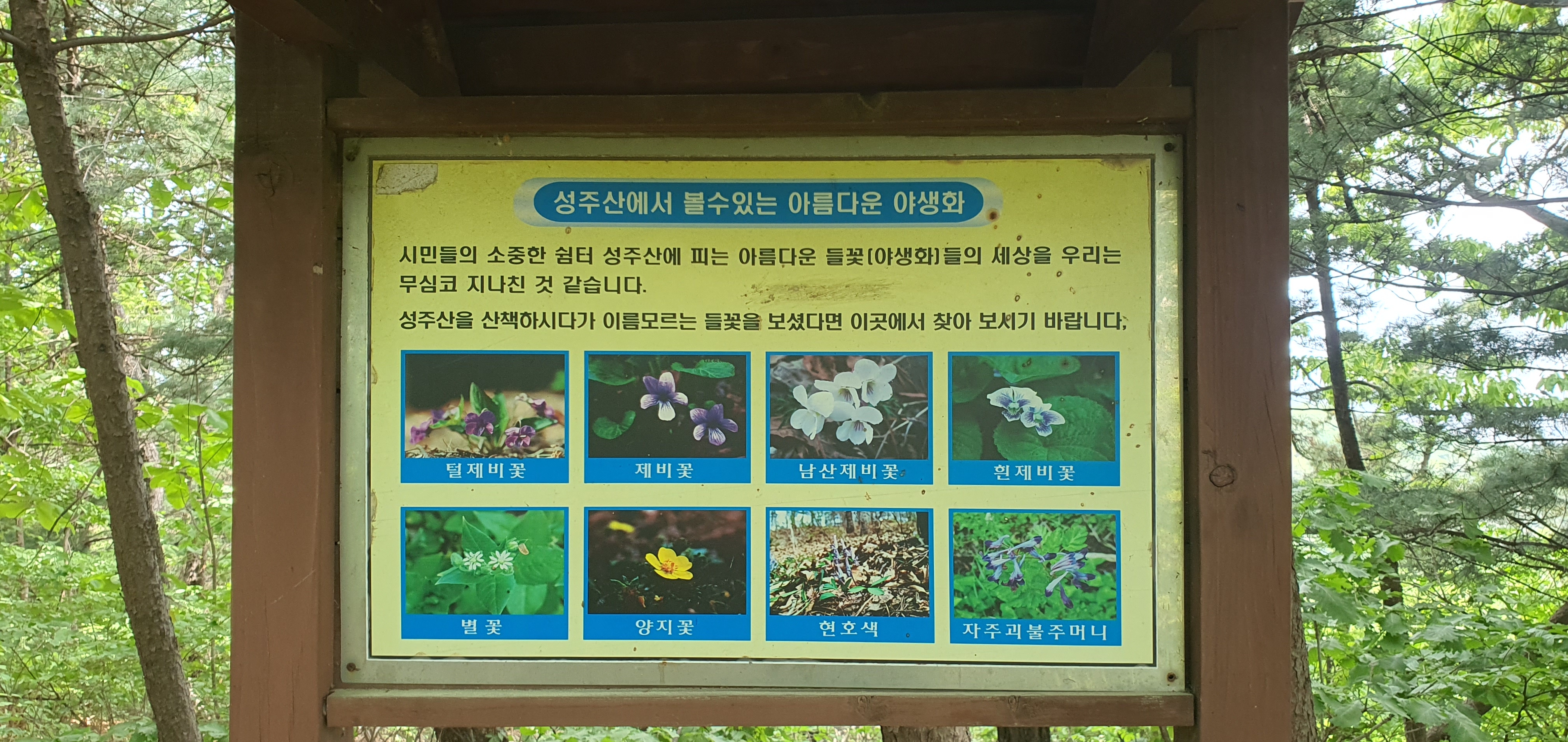 성주산 입구, 산새체육공원을 산책하며 숲 속 봄 꽃들을 즐겼다.