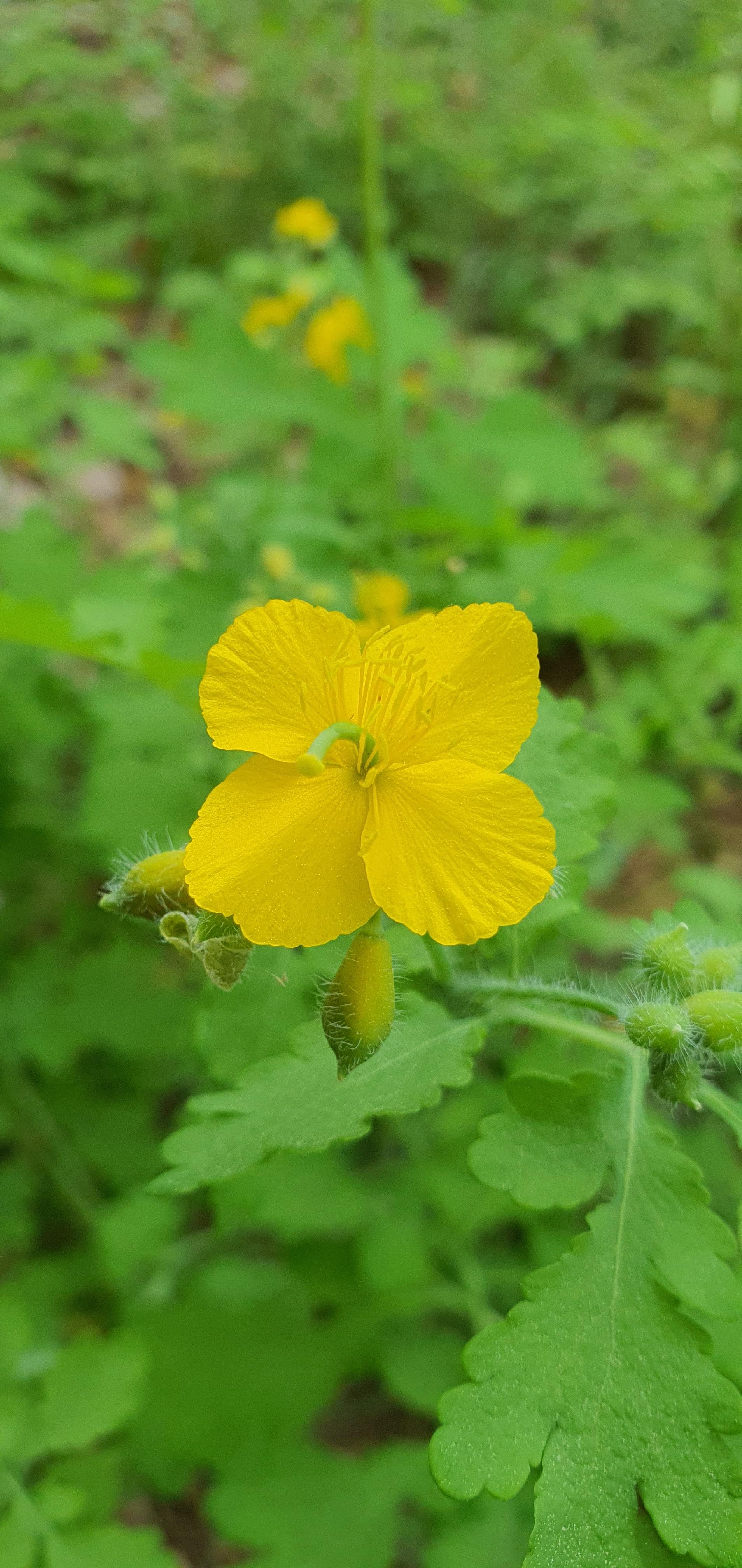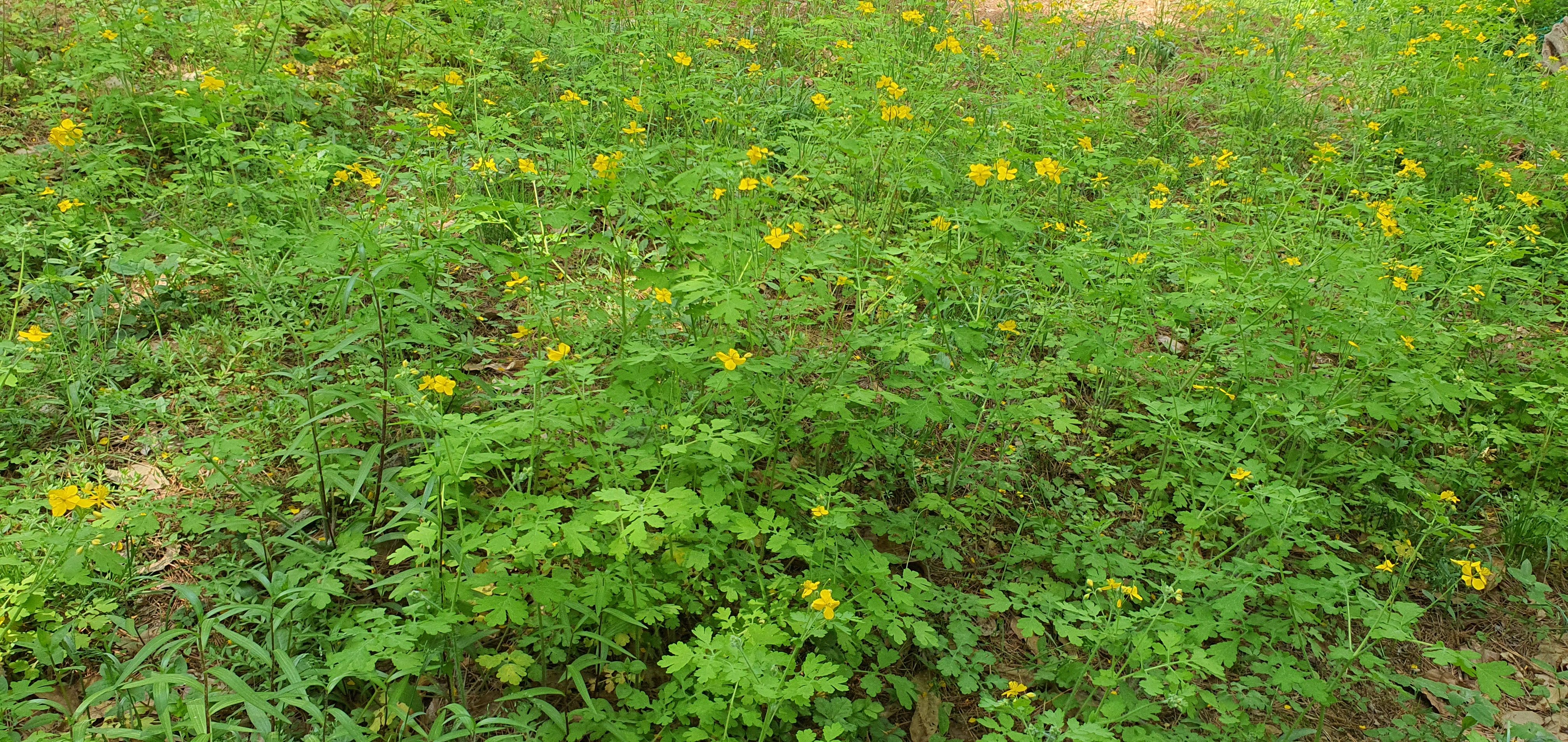 배드민턴장, 족구장을 지나 산에 오르는 입구에 애기똥풀 꽃들이 날 반기듯 수풀을 환하게 밝혀주었다.