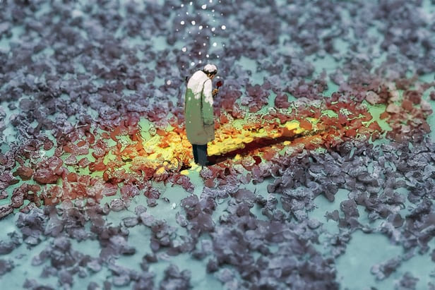 피로스마니의 무모함이 러시아 정서에는 별 무리 없이 용인된다. 그 정서는 도스토옙스키가 말한 어둠 속의 빛, 궁핍과 저열과 굴욕 속 아름다움에 대한 절대 의식으로 무장되어 있다. 무의식에 자리 잡은 종교(러시아정교)적 영향도 분명 있을 터, 단 한순간 구원을 위해 영원마저 포기하겠다는 태세로 일상의 아름다움에 집착한다. 뒤집어 보면, 일상이 그만큼 아름답지 않다는 말이다. 러시아인의 광적인 꽃 사랑은 현실에 대한 역설이다. 독재자가 된 푸틴 손에도, 전투복 입은 군인 손에도, 폐허 속 학교 가는 우크라이나 학생 손에도 꽃다발은 어김없이 들려 있다. 그것이 ‘소돔에도 아름다움이 있다’고 한 도스토옙스키식 러시아 전통이다. 러시아에는 지하철역마다 꽃가게가 있고, 심지어 24시간 꽃 키오스크도 있다. 봄·여름철이면 수줍은 미소 띤 할머니들이 작고 소박한 들꽃 부케를 만들어 와 도시인에게 판다.