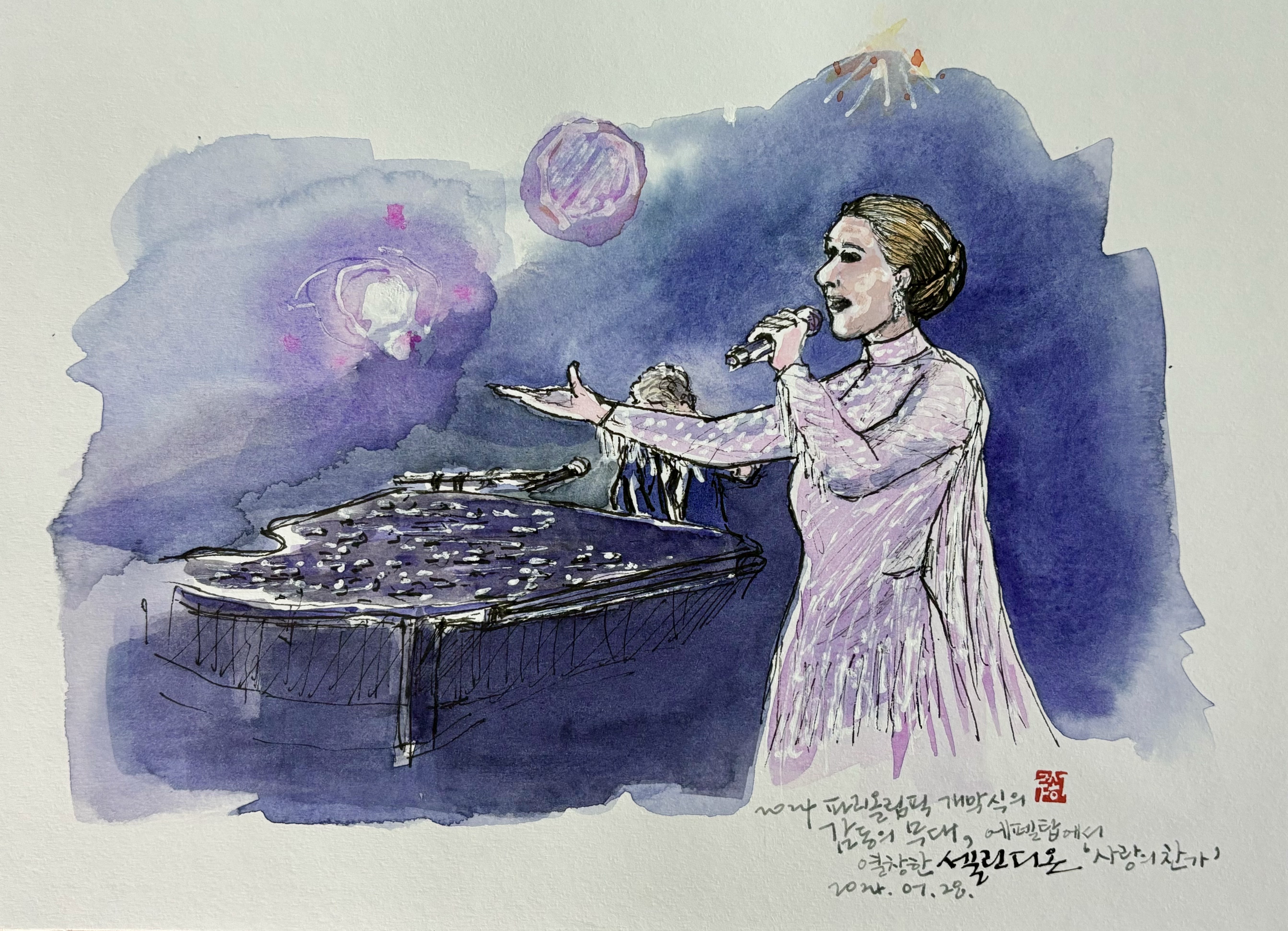 뉴스에서 파리올림픽 개막식 소식을 들었다. 선수들은 배를 타고 센강으로 입장하고 성화는 에드벌룬을 타고 에펠탑 위로 타올랐다. 여러면에서 혁신적이고 특별한 개막식이라 흥분과 감동을 주었다. 무엇보다 피날레를 장식한 셀린 디옹의 깜짝 등장, 그리고 그녀가 부른 '사랑의 찬가(Hymne A L’amour)'는 그야말로 감탄이었다. 그 감동의 전율을 오래 간직하고자 TV방송사의 뉴스를 그대로 옮긴다.