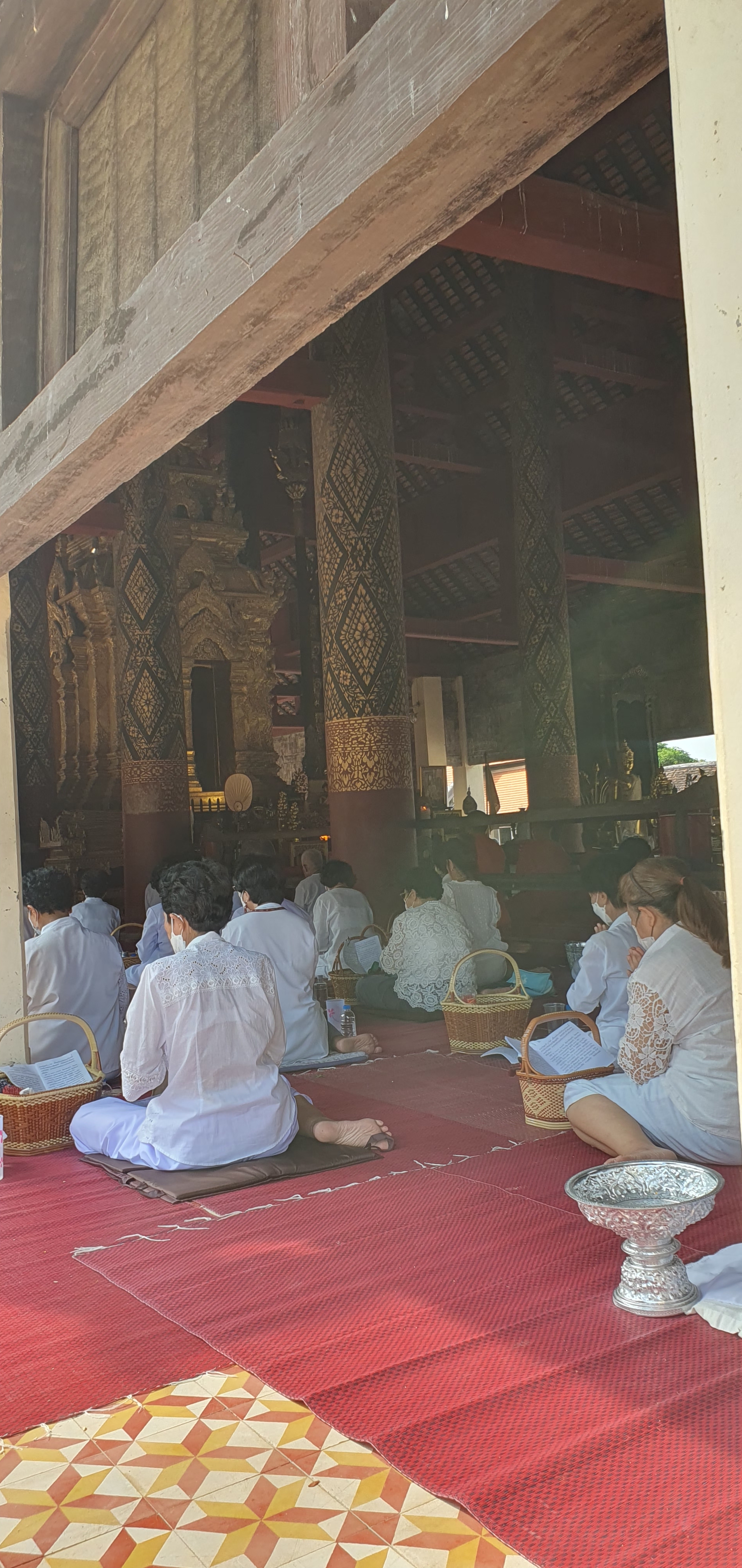 찾아갔을 때 마침 사원에서 큰 예불 행사가 있었다. 흰 옷을 입은 많은 신도들이 스님과 함께 염불을 한다.