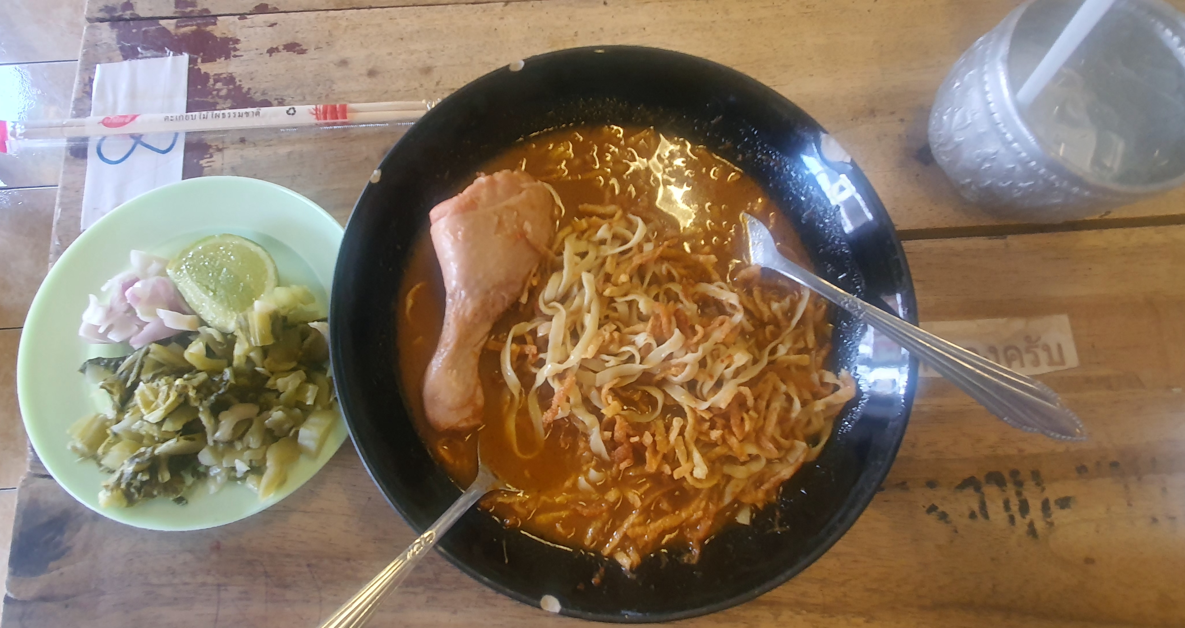 다행히 문을 연 식당이 있다. 한번 먹어 본 '닭다리라면'(카오소이)을 시켜 먹었다. 국물은 식어 있고 게다가 많이 짜다. 여전히 내 입 맛에는 별로다. 다신 안 먹어!
