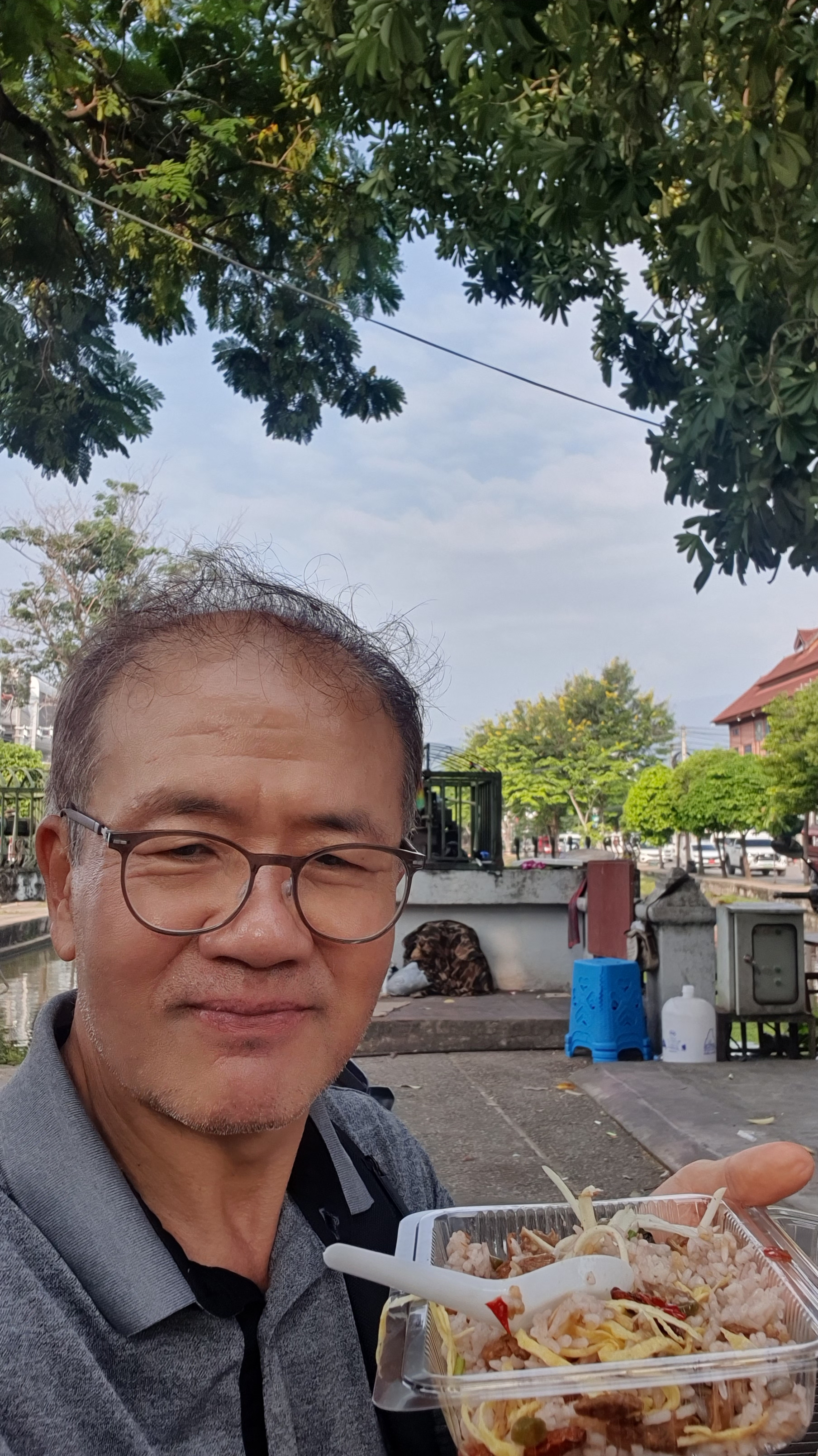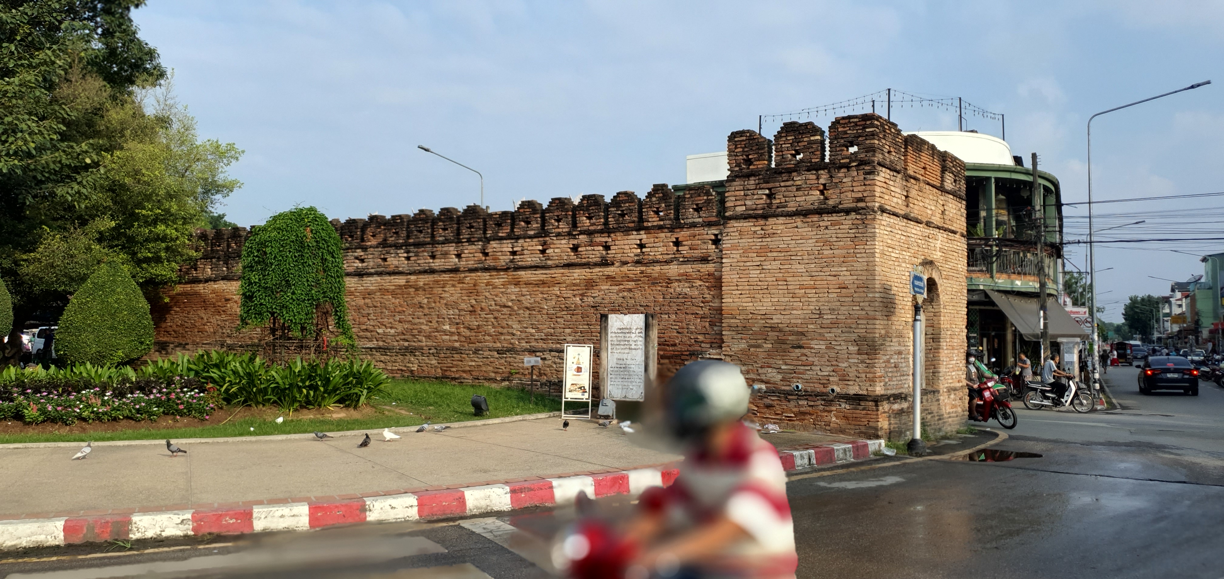 부악 핫 공원이 있는 남서쪽 코너 성벽에서부터 치앙마이 게이트까지 걸어가며 옛도시의 정취와 현재의 삶을 살아가는 사람들을 구경했다. 치앙마이 게이트 앞 시장에서 밥을 사서 게이트 옆 벤치에 앉아 밥을 먹었다.