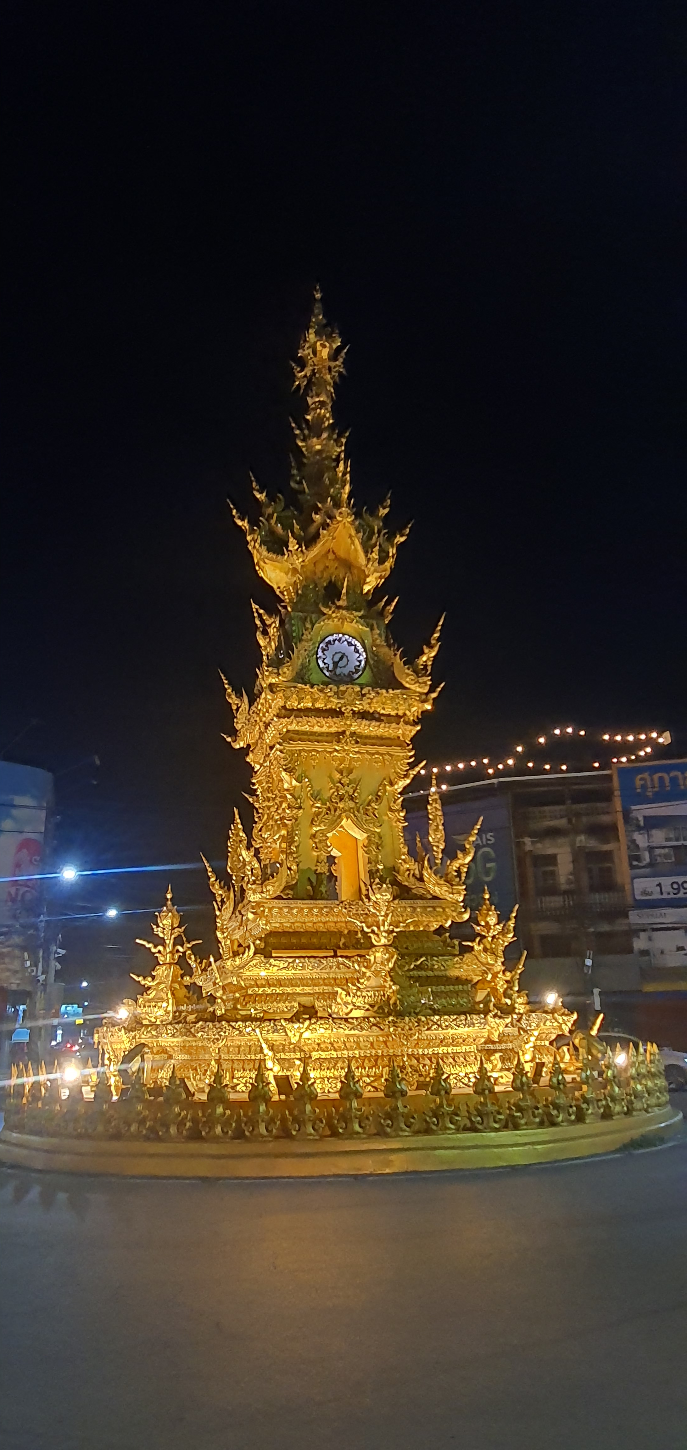 22일 째, 치앙라이 투어 중 4번째의 색. 바로 황금색이다. 시내 중심 로터리의 중앙에 서 있는 황금시계탑은 치앙라이 랜드마크와 같다. 때마침 오후 3시 정각.