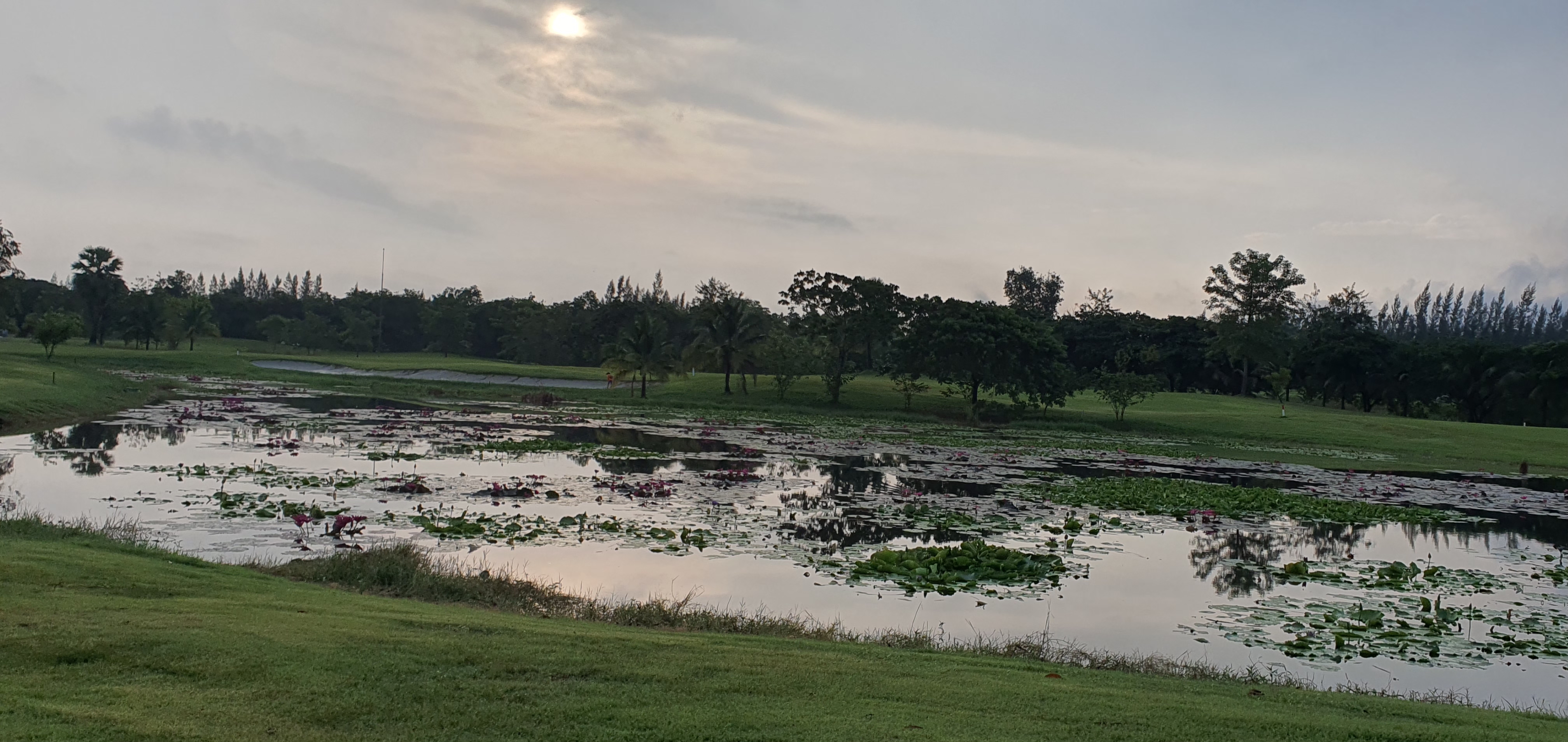 그러나 하리푼차이 골프장 위에는 구름도 걷혔다. 이게 다행인지, 불행인지? 지금껏 기억에 하리푼차이 골프장에 올때마다 날씨는 금새 개였다. 그래서 연못에 핀 연꽃들은 금새 세수를 마친 미녀처럼 예뻤다.