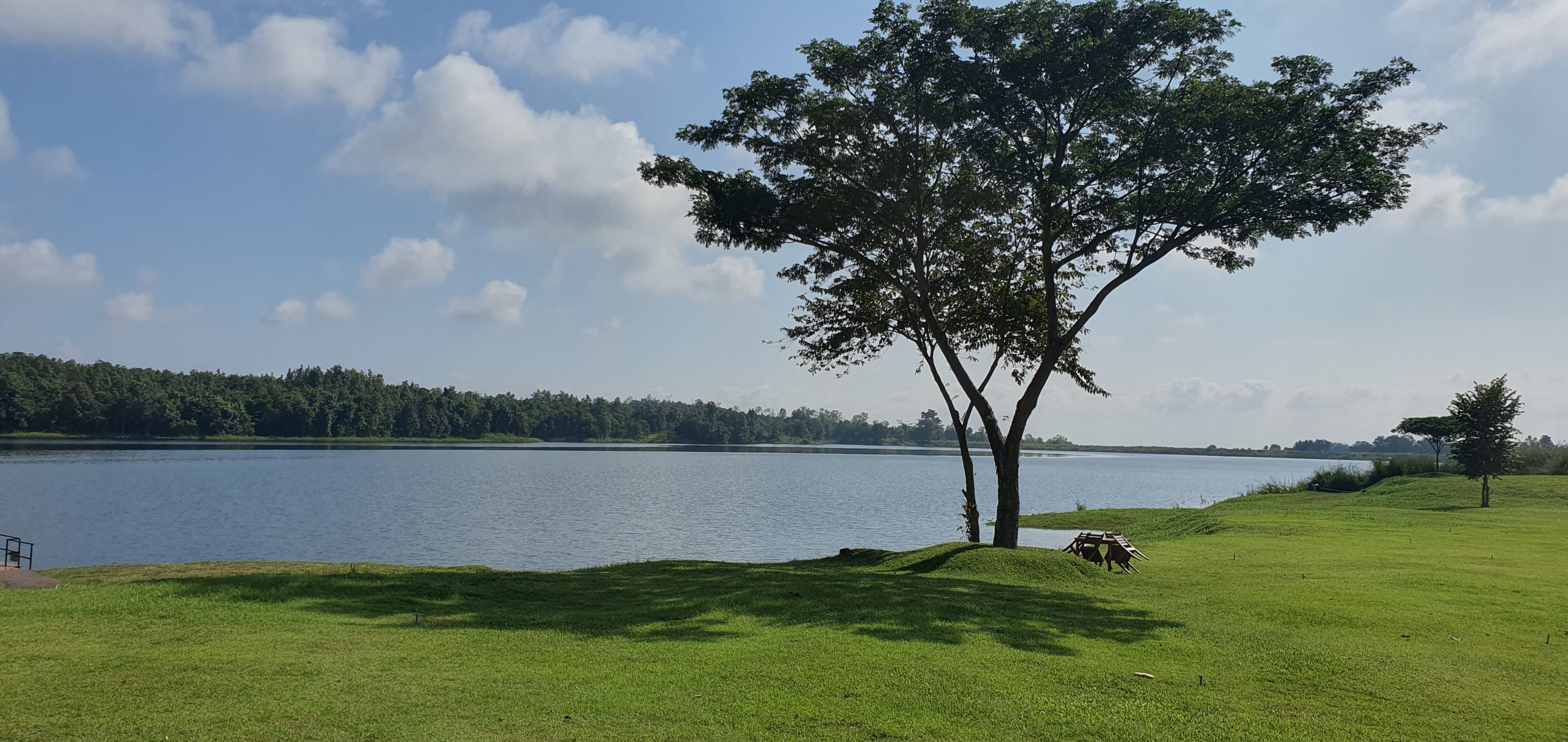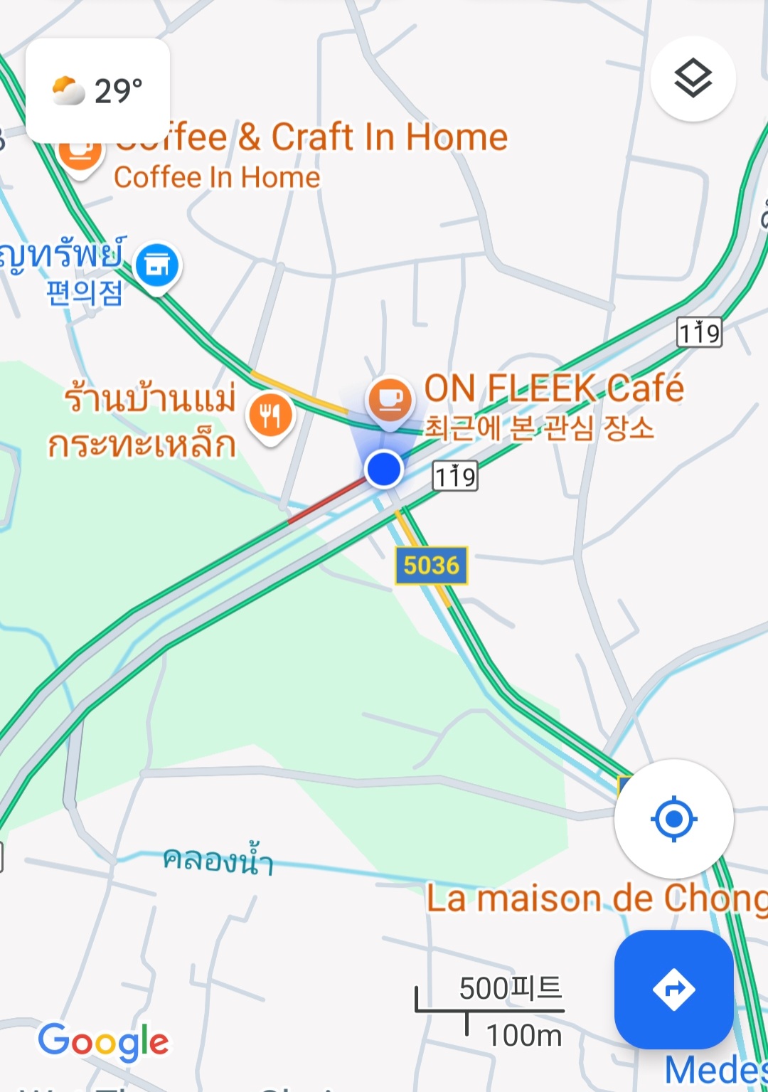 돌아오는 길 119번 도로에서 상하행 도로 중간으로 천(川)이 흐르고, 보를 관리하는 듯한 구조물 지붕도 타이(Thai)스럽다.