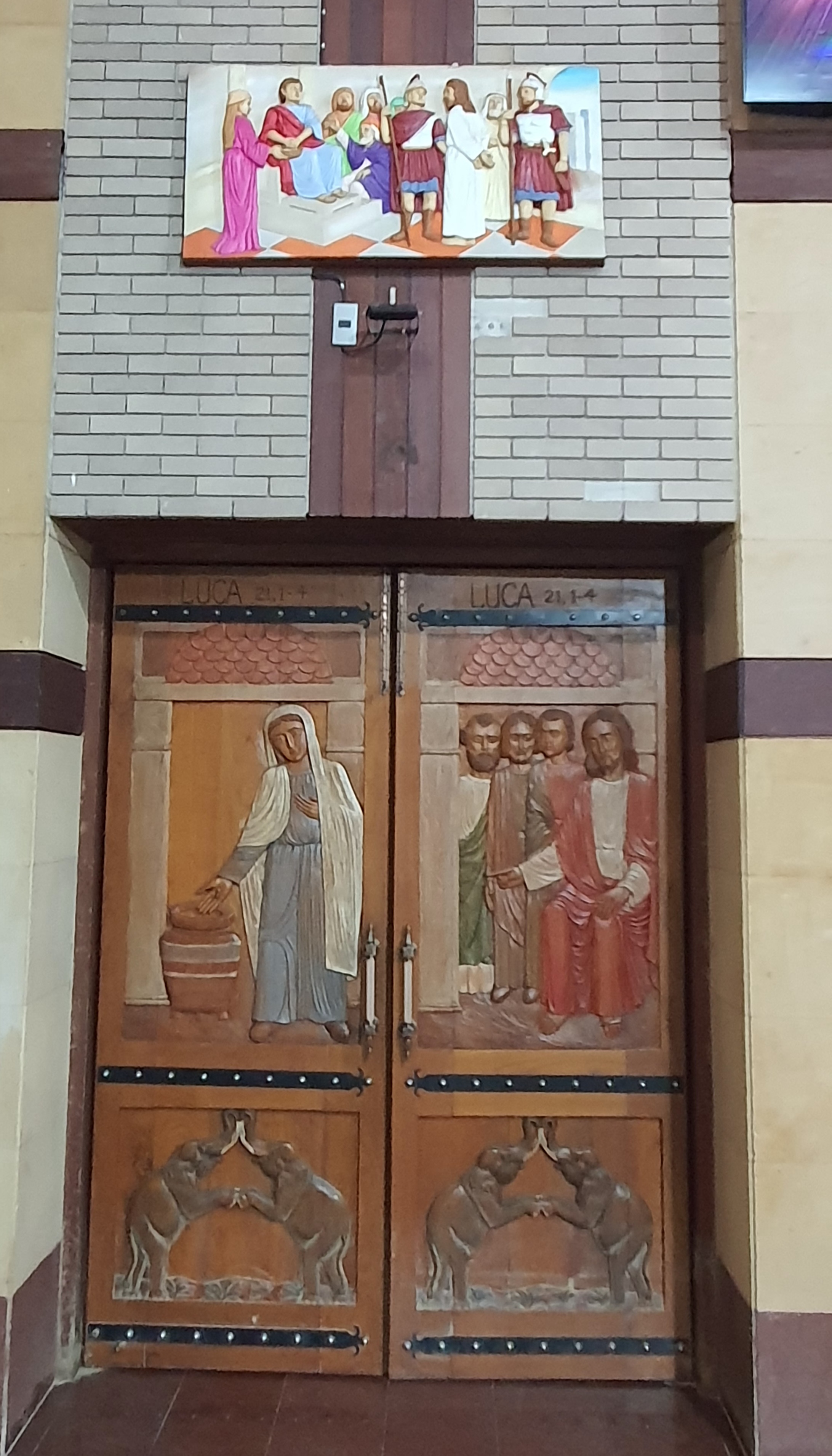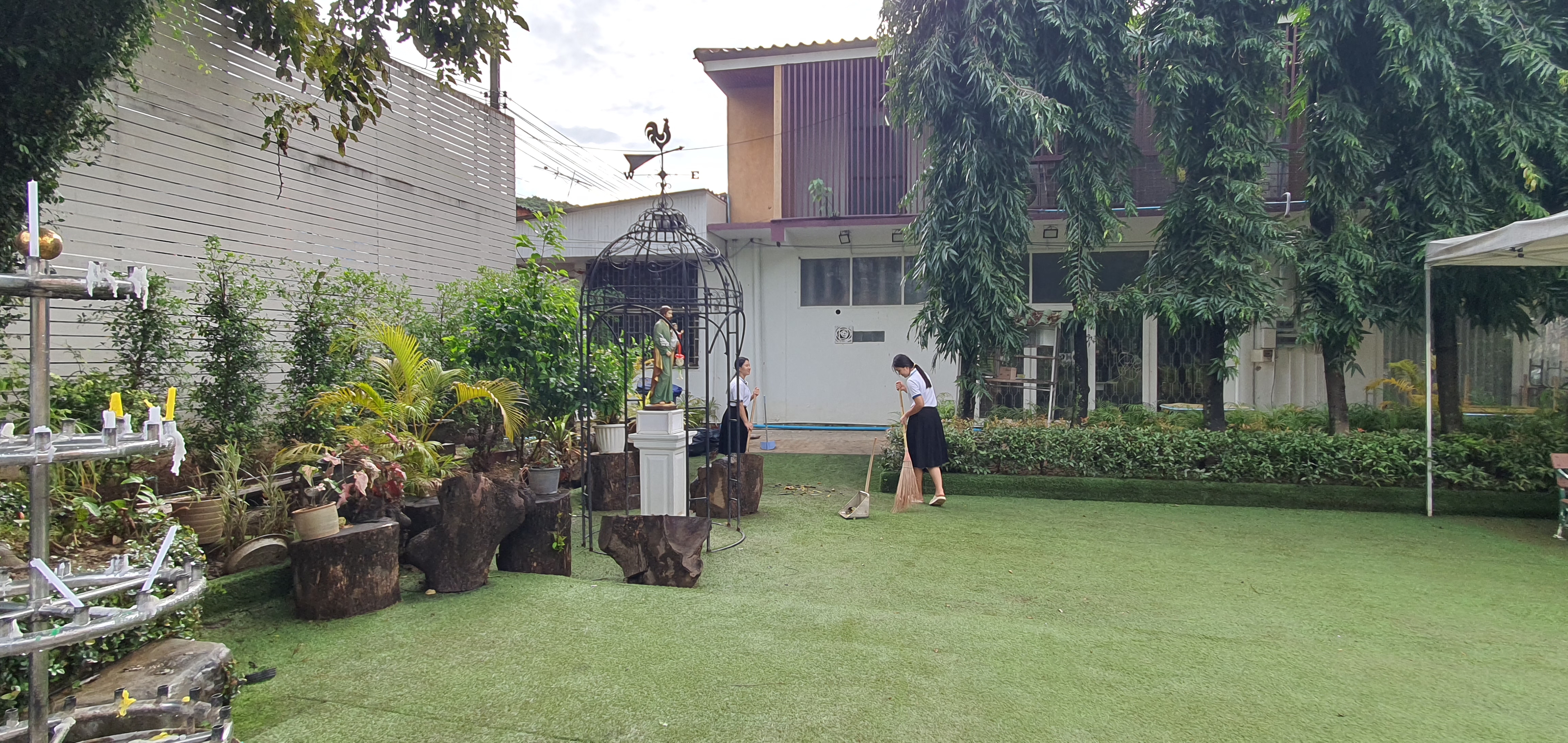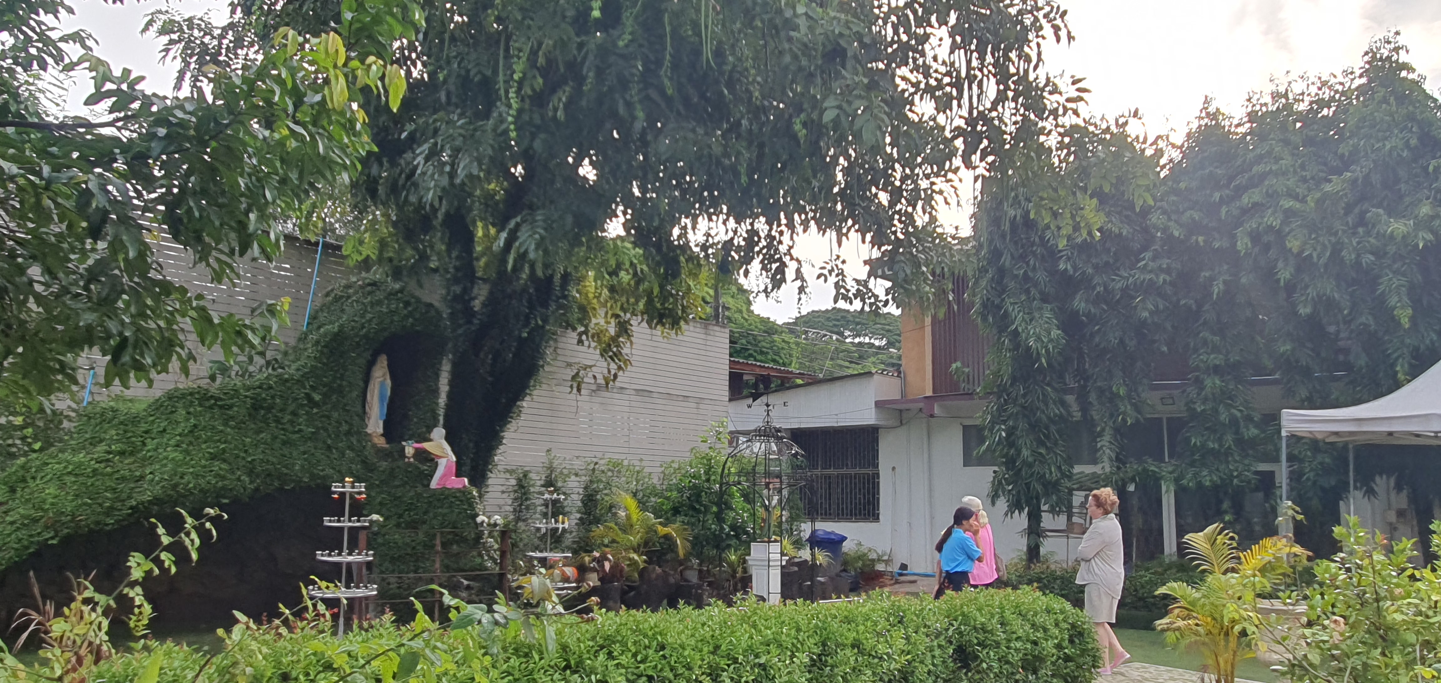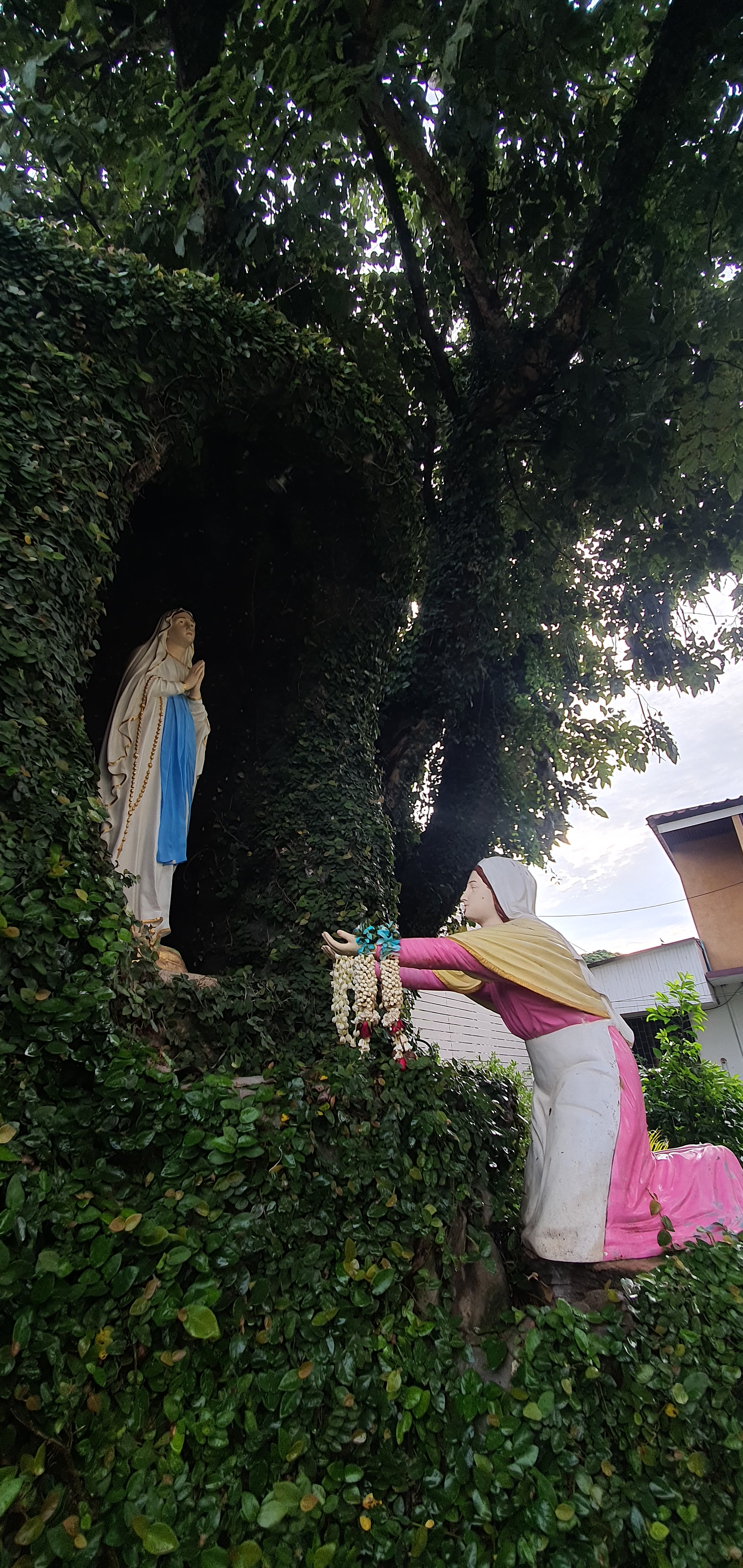 성당입구에서 학생들이 꽃을 팔고 있었다. 성모상에 헌화할 작은 꽃바구니, 20바트 지폐 하나를 기부통에 넣고 성모상에 바치고 기도하고 성당으로 들어간다. 기부금이 너무 작었나 싶어서 100바트 지폐를 한 장 더 넣고, 학생들을 위해서 마음 속으로 기도했다.