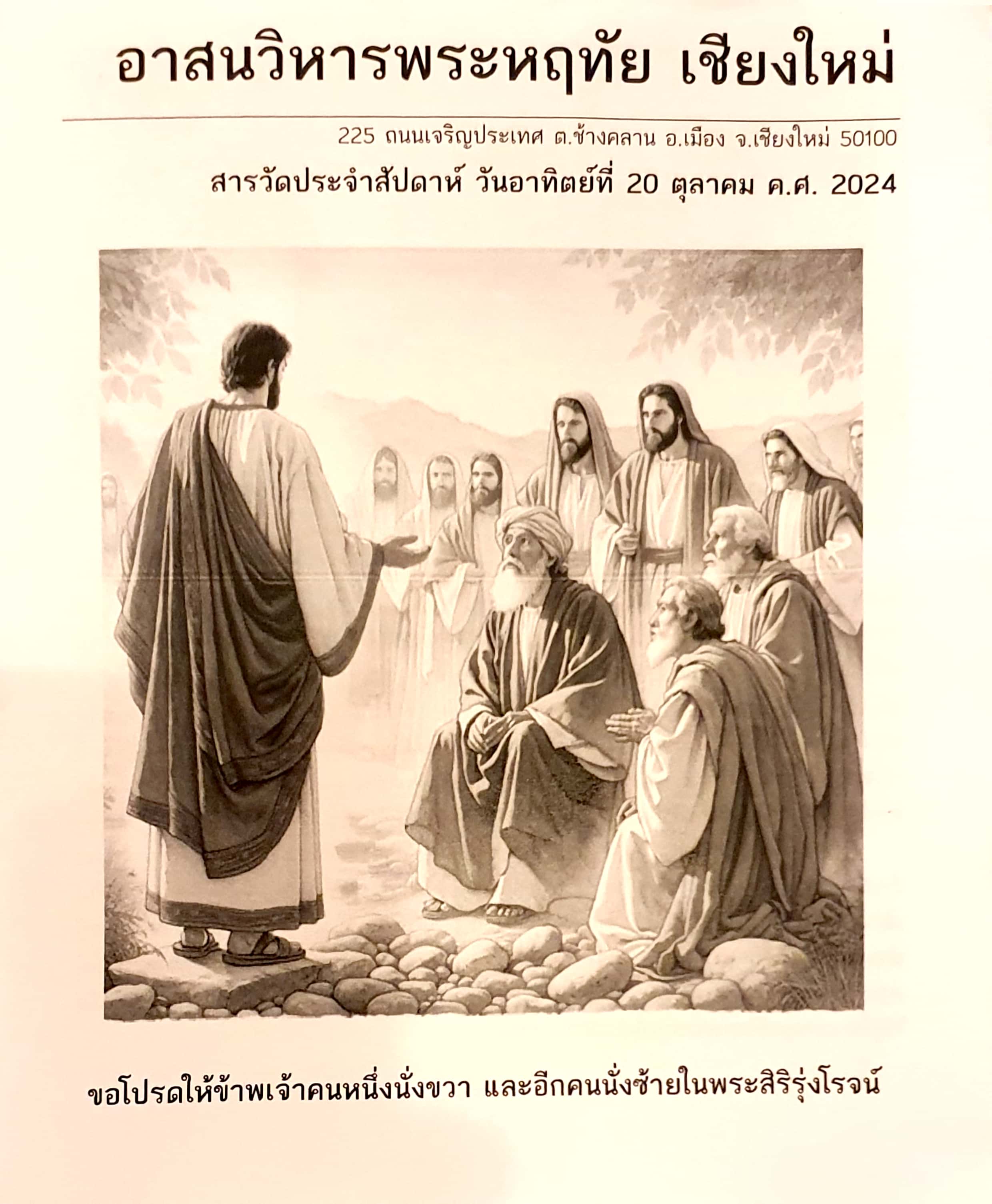"저의 여행을 함께 하시고 보살펴 주신 은혜 감사드립니다. 이 나라와 구도자들의 평화와 태국인들의 행복을 빕니다. 홍수피해로 고생이 많았던 치앙마이, 치앙라이, 람푼, 람빵 사람들을 위로하시고 다시 일어설 수 있게 도와주소서. 이제 내일 모레면 저는 가족들이 있는 내 나라로 돌아갑니다. 저의 무사 귀국도 함께 하소서. 아? 아까 만난 바오로 형제님과 냉담중이라는 그의 처, 클라라 자매님도 다시 하느님전으로 돌아오기를 기도드립니다. 저의 가족들과 늘 함께 하소서. 아멘!"