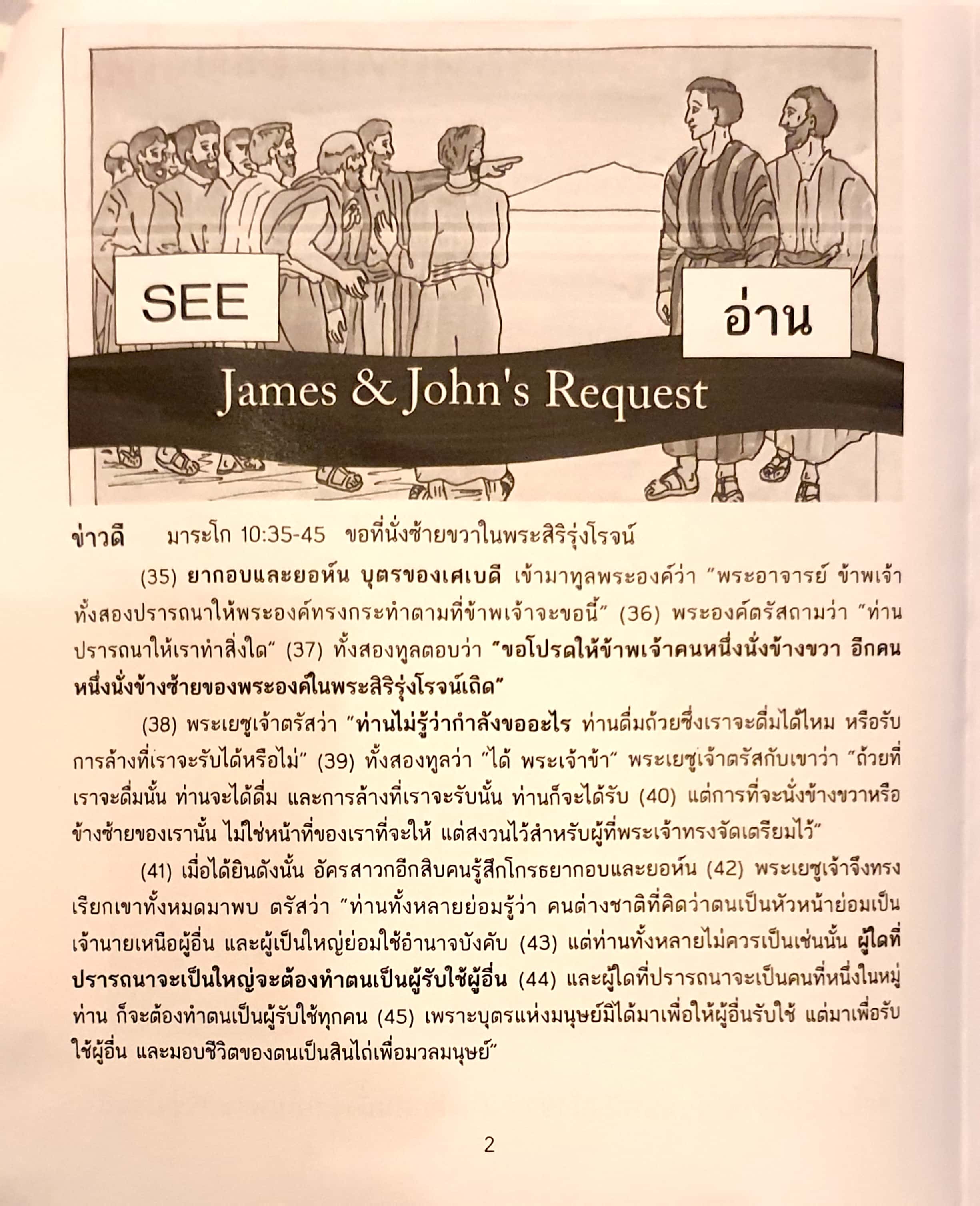 마르코복음서 10,35 제베대오의 두 아들 야고보와 요한이 예수님께 다가와, “스승님, 저희가 스승님께 청하는 대로 저희에게 해 주시기를 바랍니다.” 하고 말하였다.