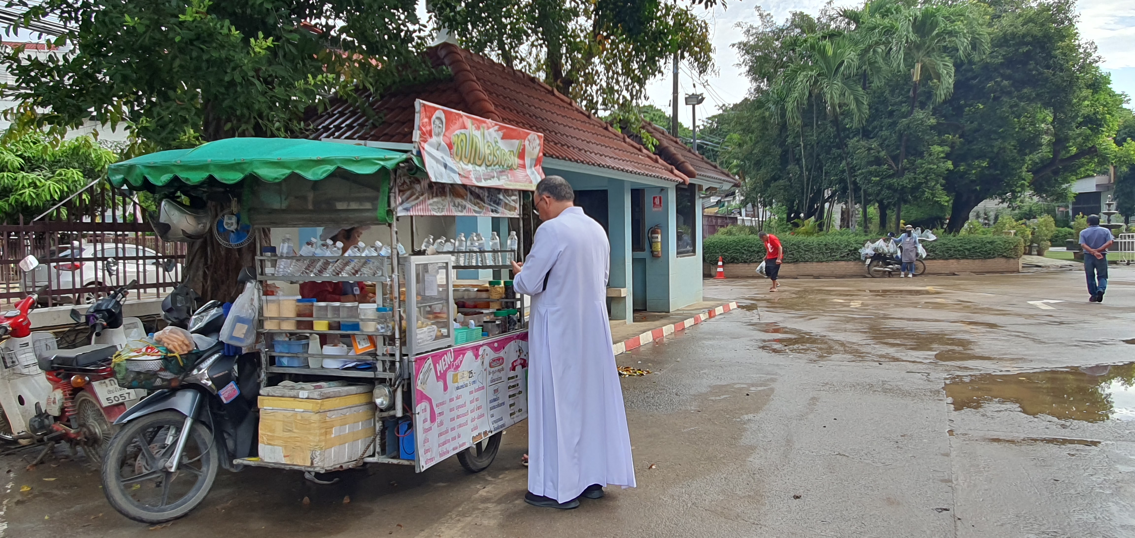 미사드리고 카페에서 커피도 한잔하리라...아! 마침 잘 되었다. 성당마당에서 작은 수레에 쿠스타드크림 팬케이크 롤을 팔고 있었다. 신부님도 사 먹고 있네. 저 롤케이크랑 진한 커피는 너무 잘 어울리겠다. 미사드린 후에...