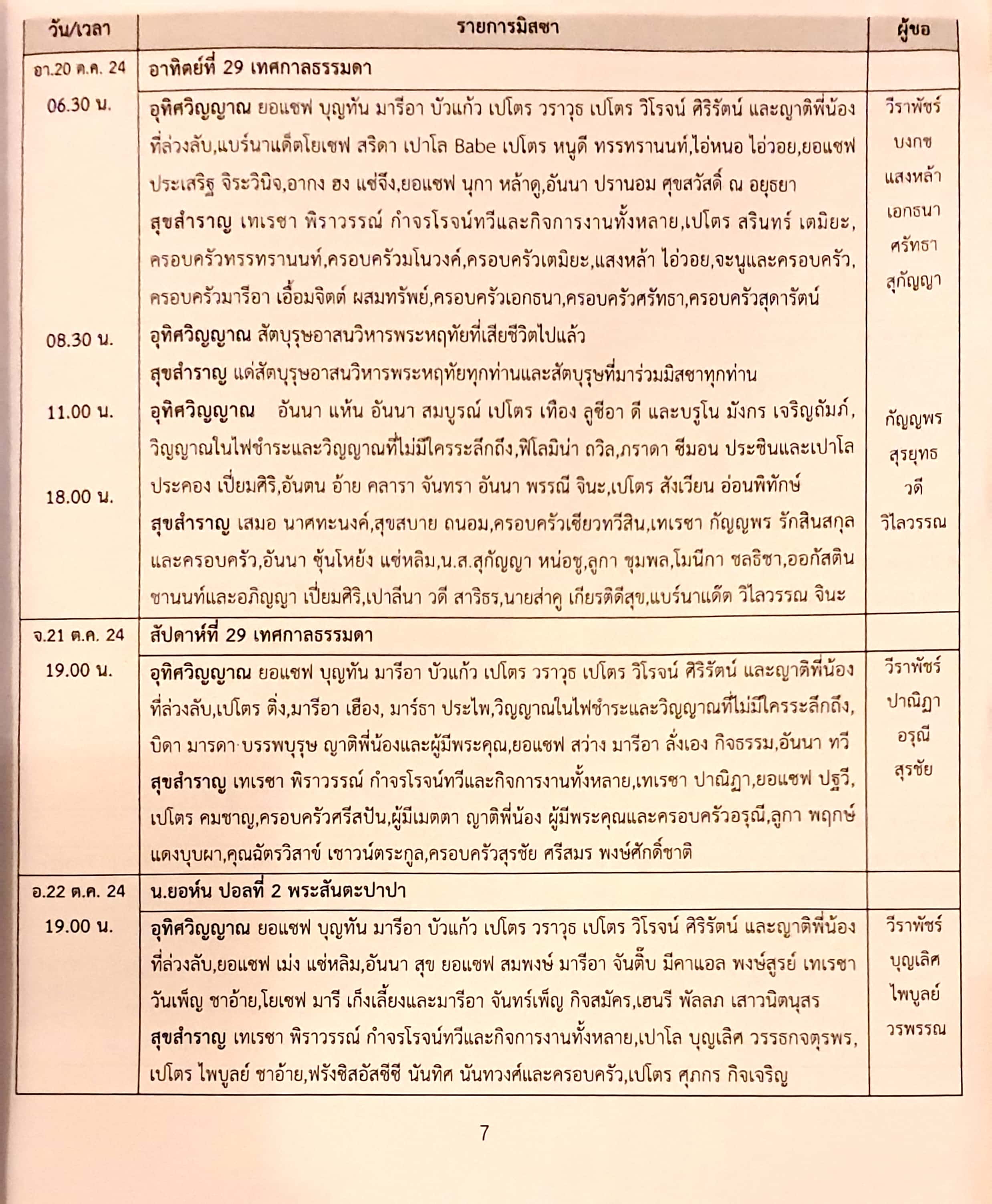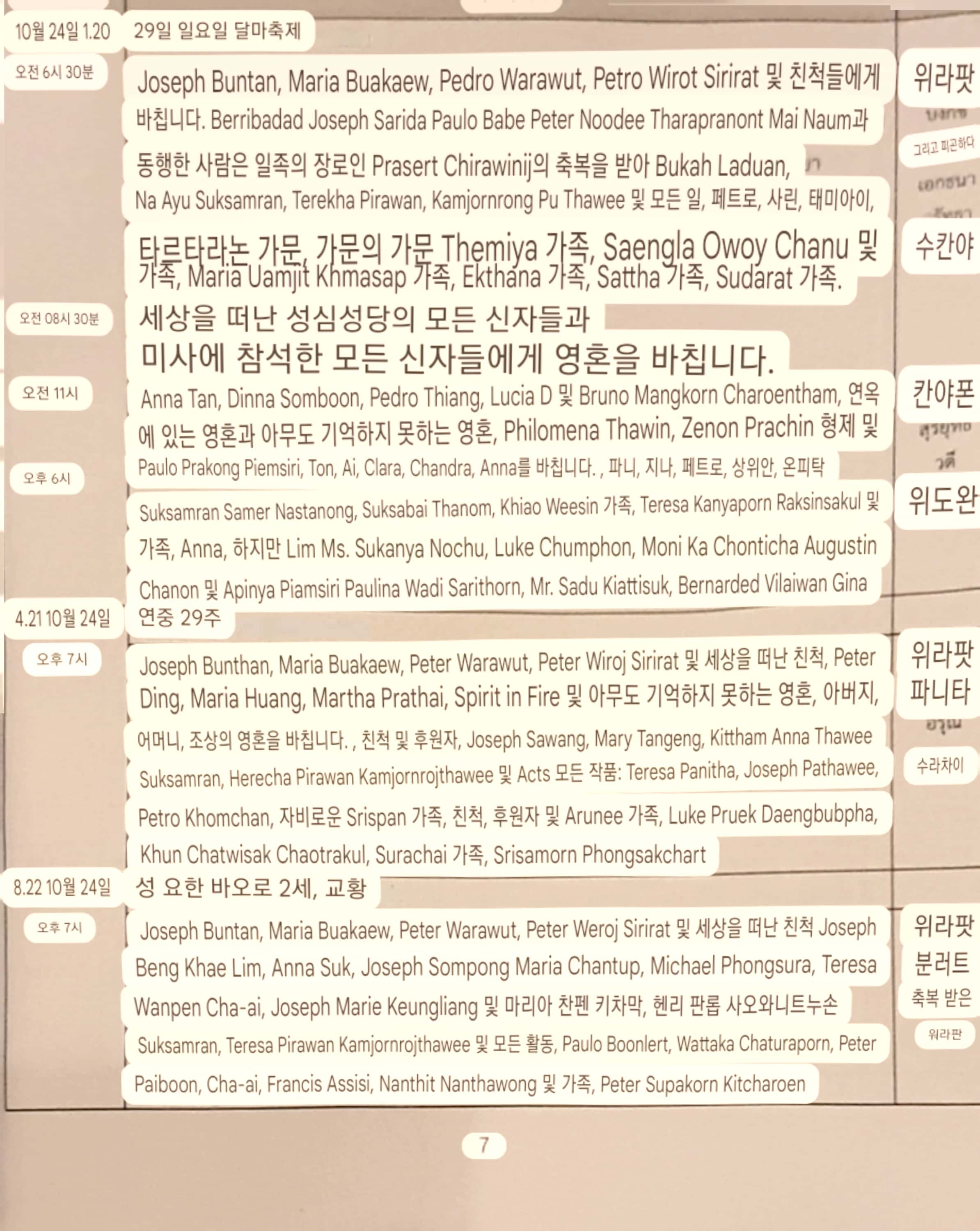 월ㅡ토, 저녁 7시 (태국어 미사)