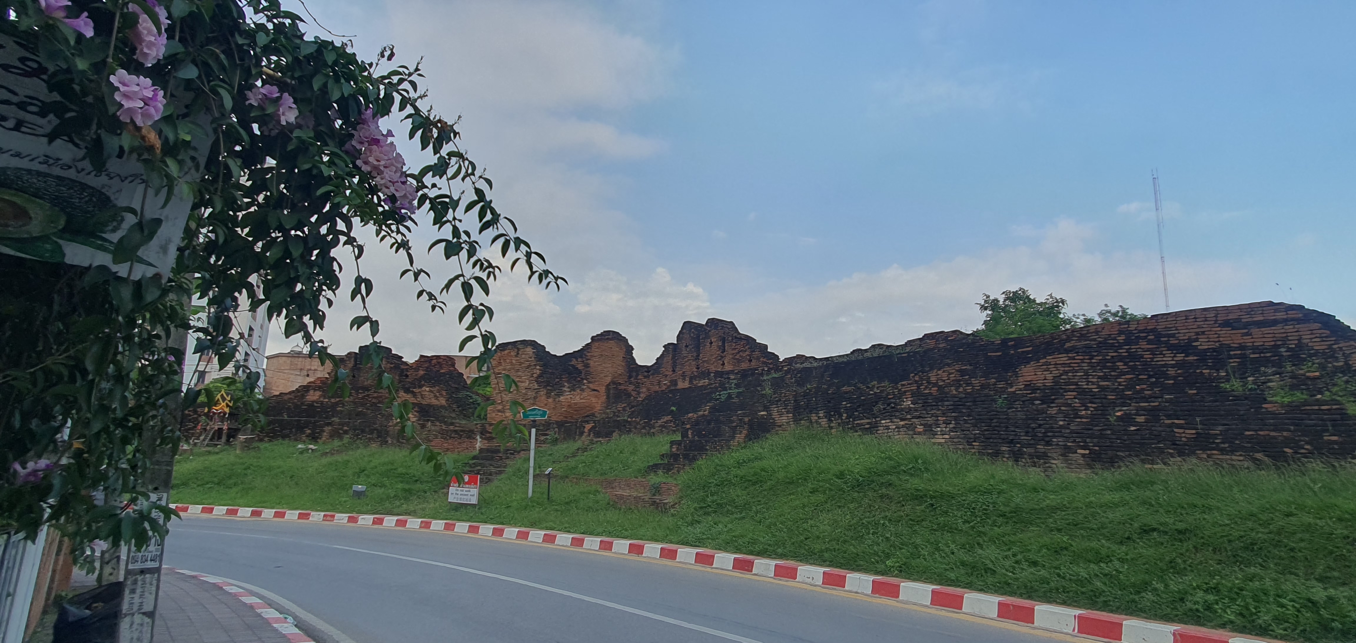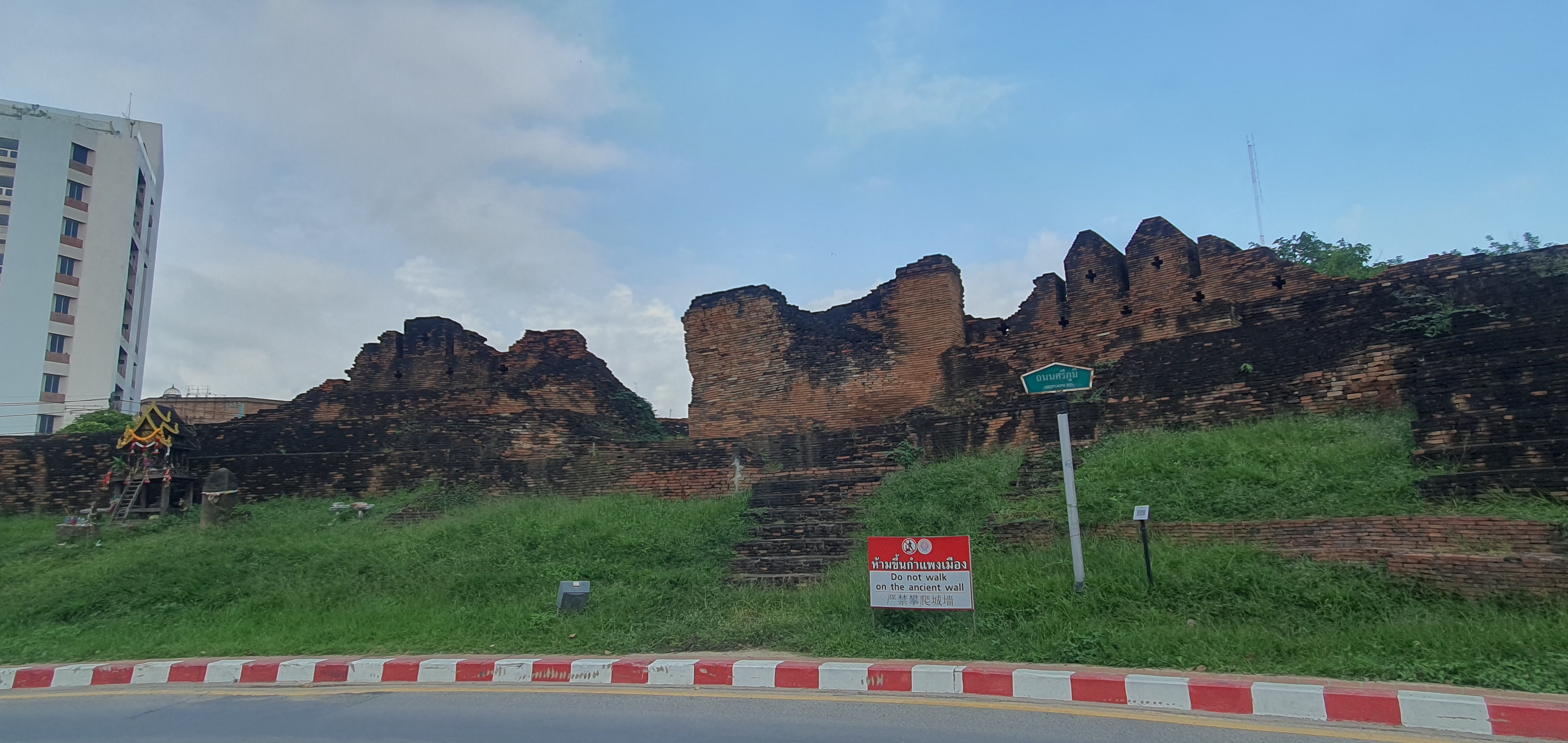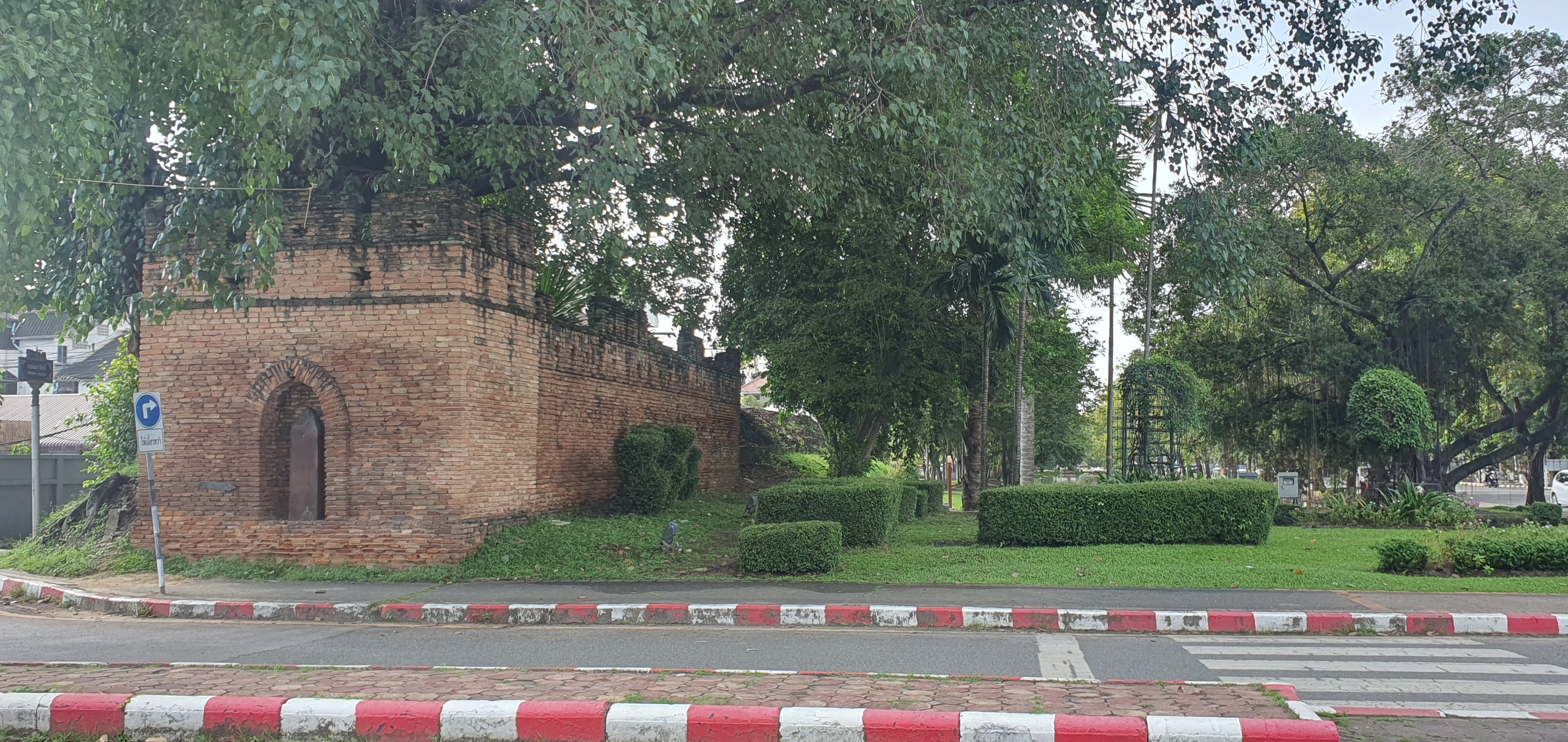 치앙마이, 피만팁 골프클럽에서 나와 차를 타고 해자 서쪽에서 북쪽을 지날 가면서 본 북동 모퉁이 성벽