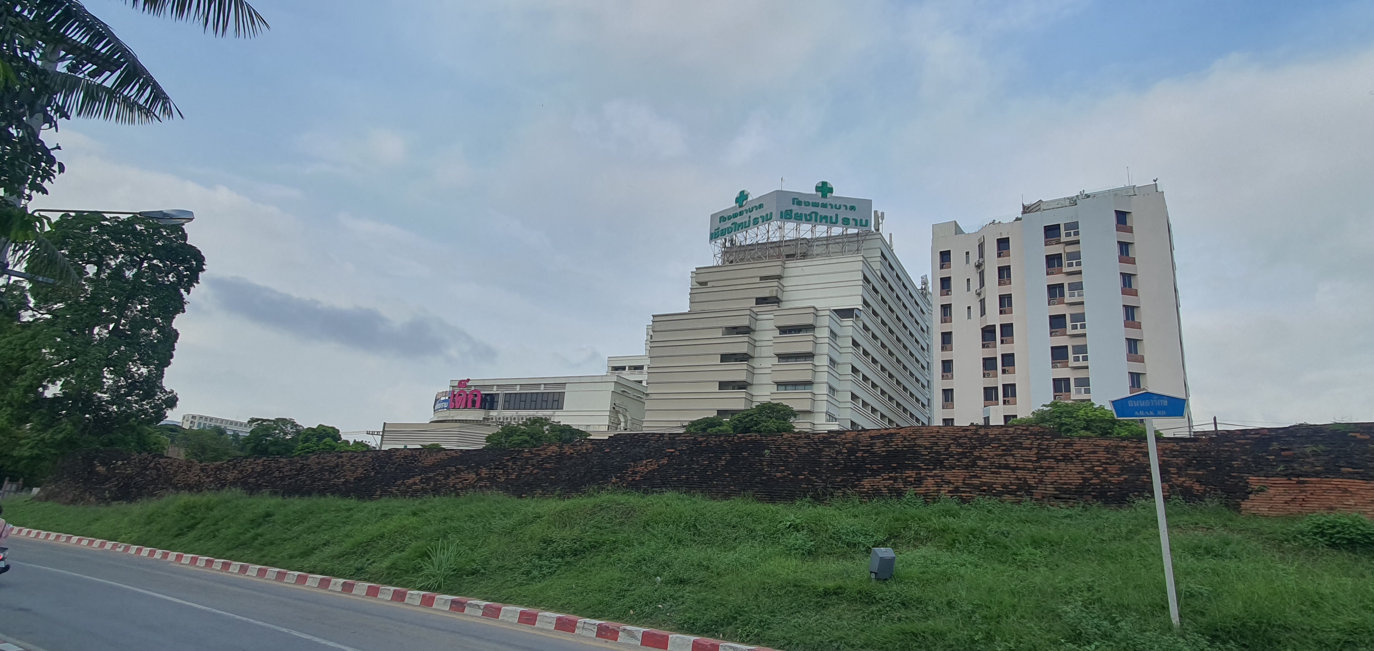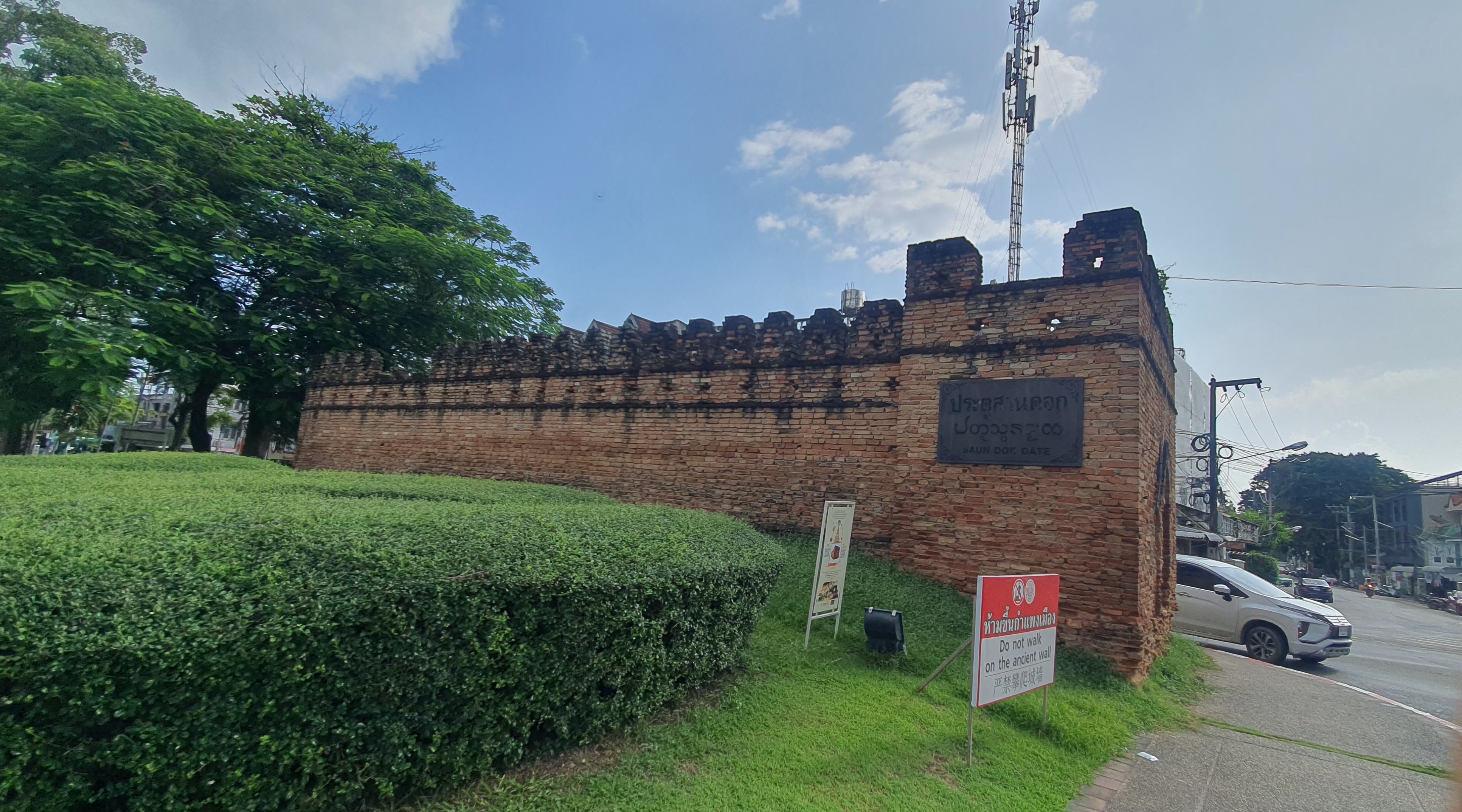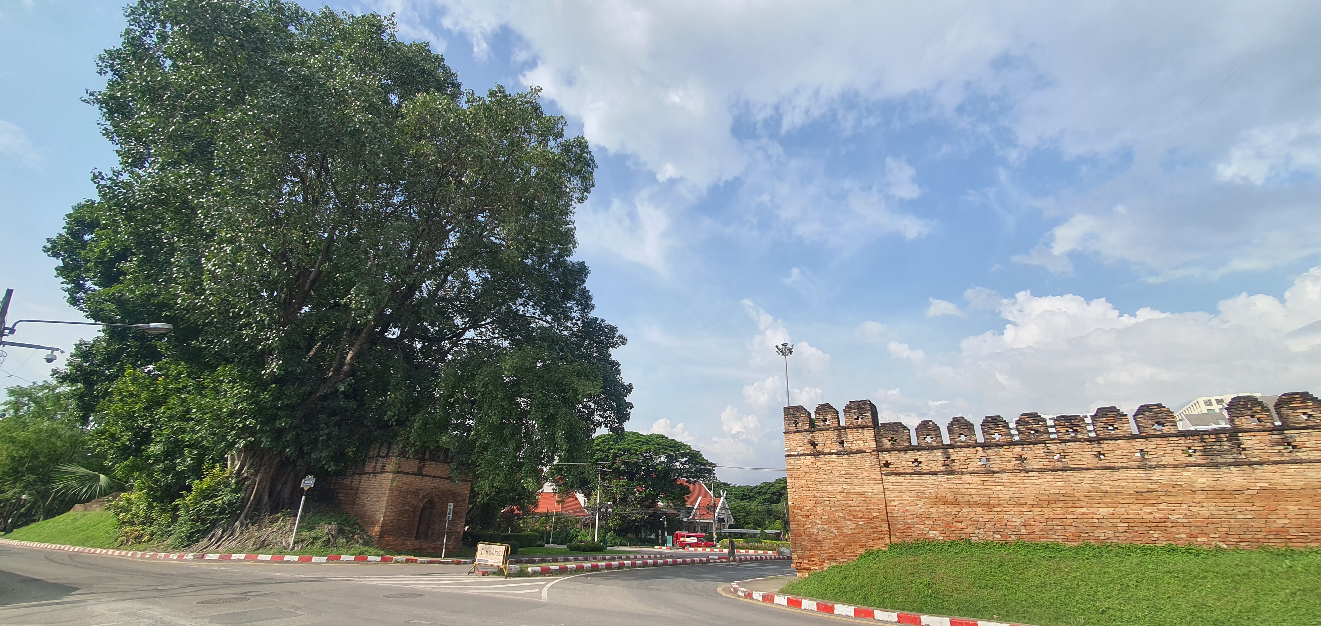 치앙마이, 피만팁 골프클럽에서 나와 차를 타고 해자 서쪽에서 북쪽을 지날 가면서 본 북동 모퉁이 성벽
