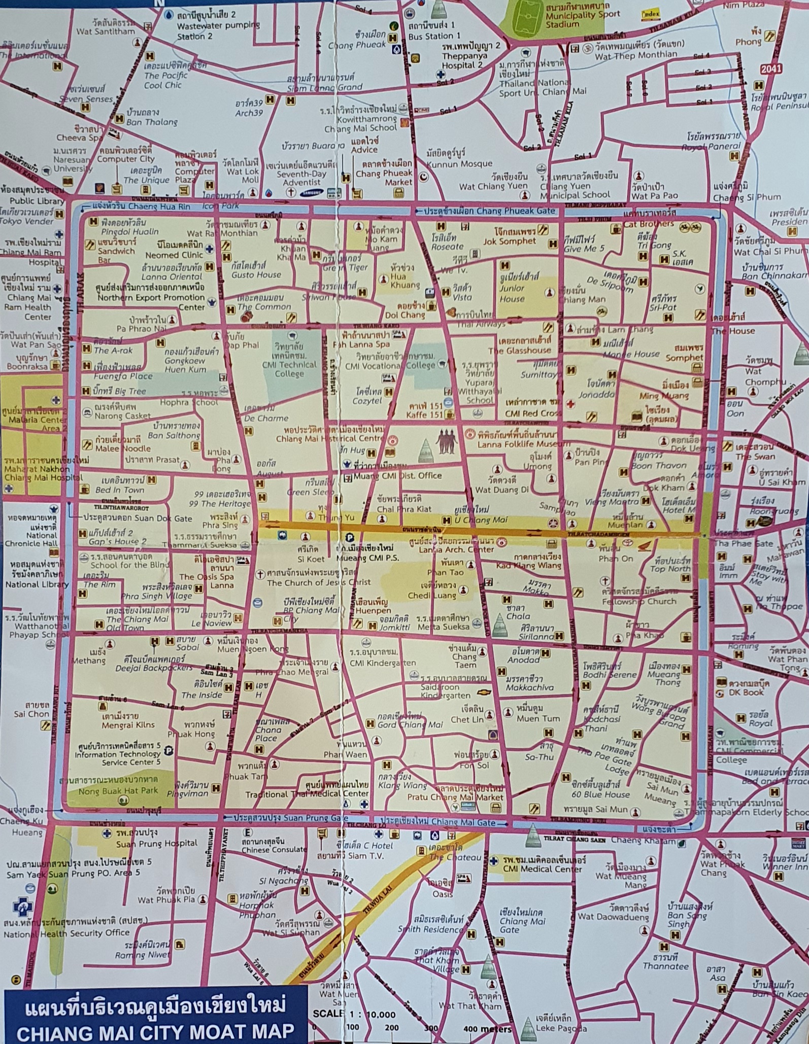 센트럴 페스티벌 안의 서점에서 구입한 지도에서는 '치앙마이 도시해자'(Chiang Mai City Moat)'라고 했다. 람푼시내 하리푼차이 왕국해자도 있으니 치앙마이 도시해자라고 구분해서 부르는 것이 맞겠다.