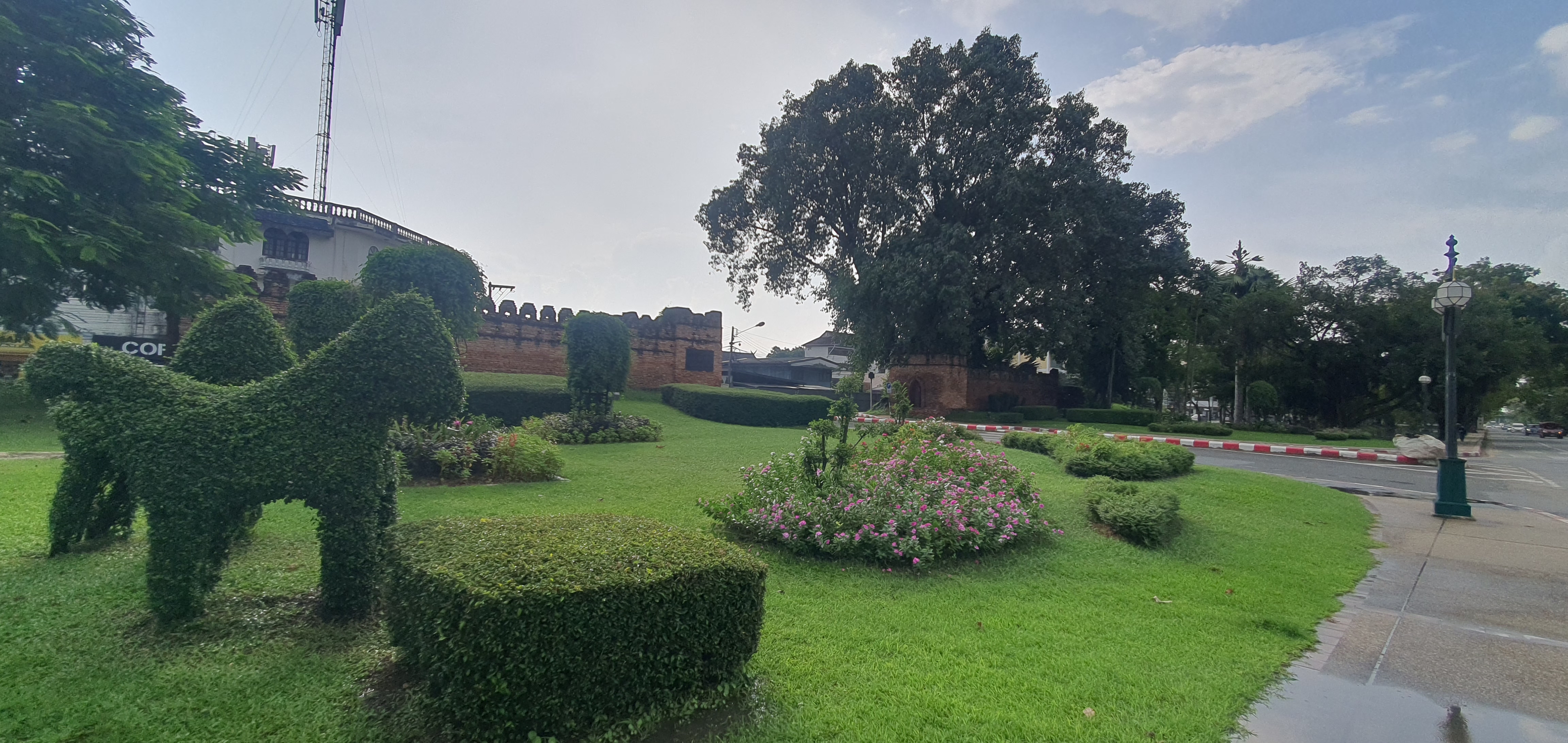 아직도 허리가 불편하다. 골프는 쉬고 좀 걸어야겠다 싶어서 왓 록 몰리앞에 내려 달라고 하고, 해자(垓字/垓子) 북서쪽과 올드시티 안을 걸었다. 치앙마이 내의 해자도시를 부르는 명칭은 여러가지다. '구시가지'라는 뜻으로 '올드타운(Old Town), 올드시티(Old City)'라고도 한다.