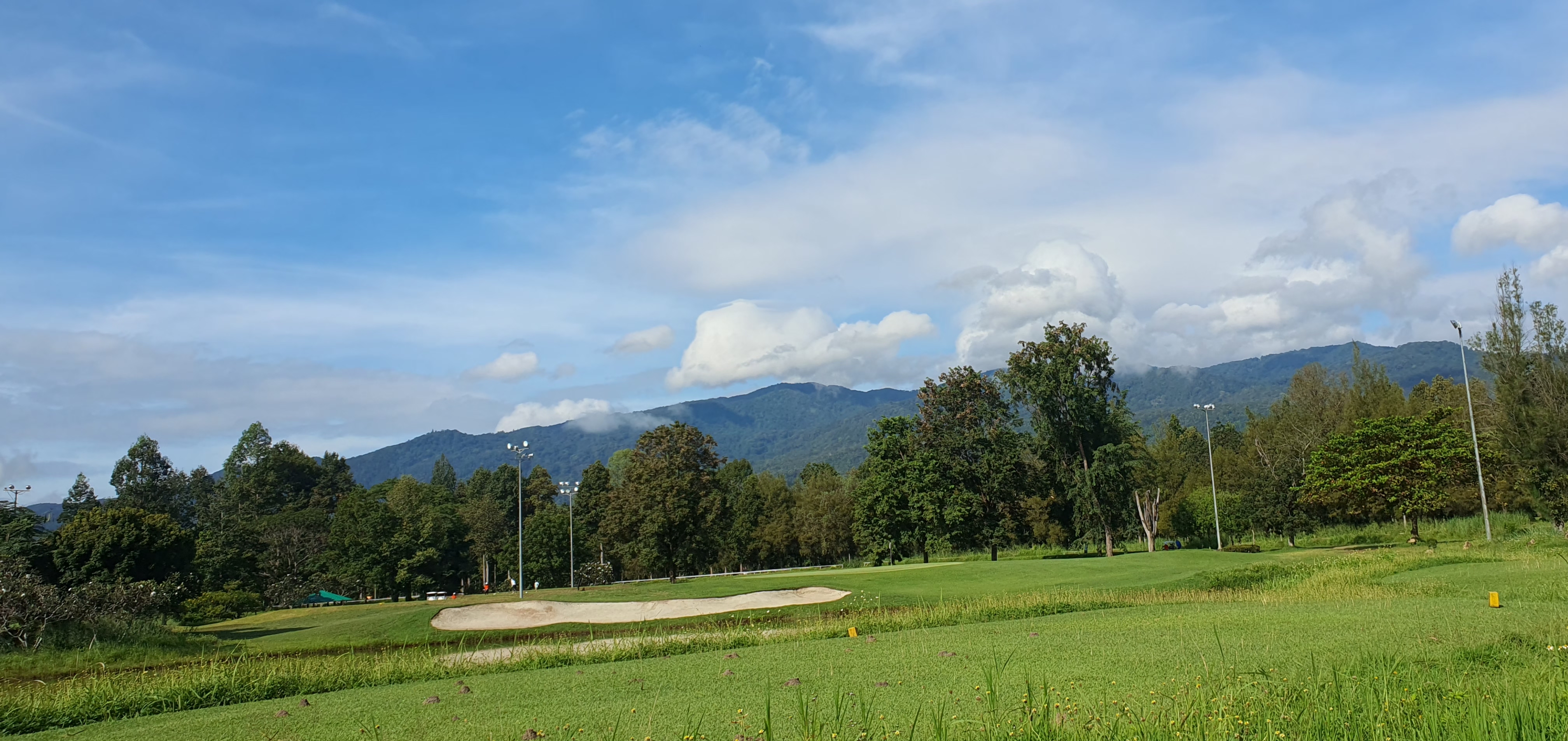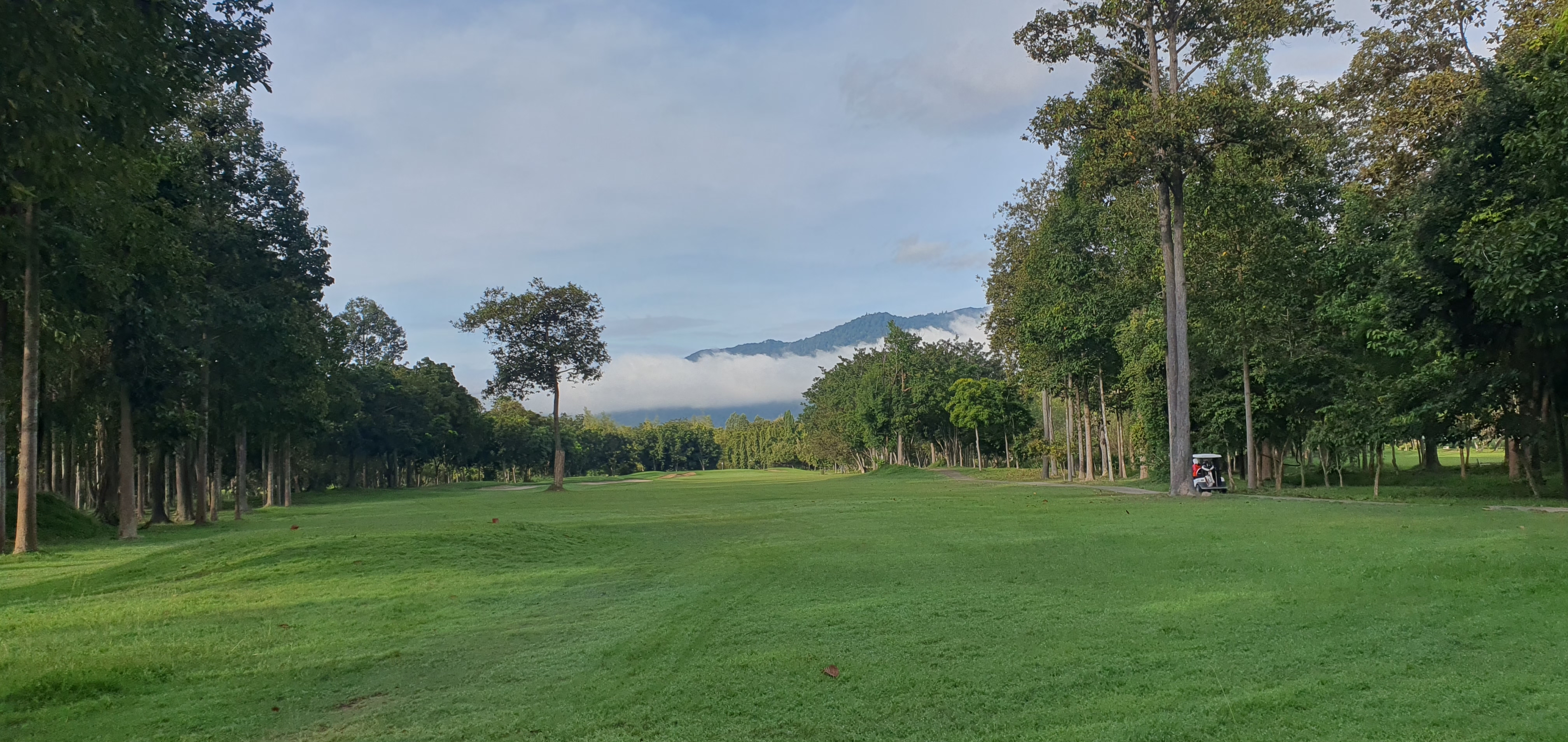 골프를 잘 치려면 페어웨이와 볼, 무엇보다 나의 자세에 집중해야는데, 경치구경에 정신 팔리니 아직 초보를 벗어나지 못했다. 첫 홀부터 퐁당 퐁당..후반전에 그나마 에이밍(Aiming)이 많이 좋아졌나보다. "땅 뜨롱(ตั้งตรง)!"