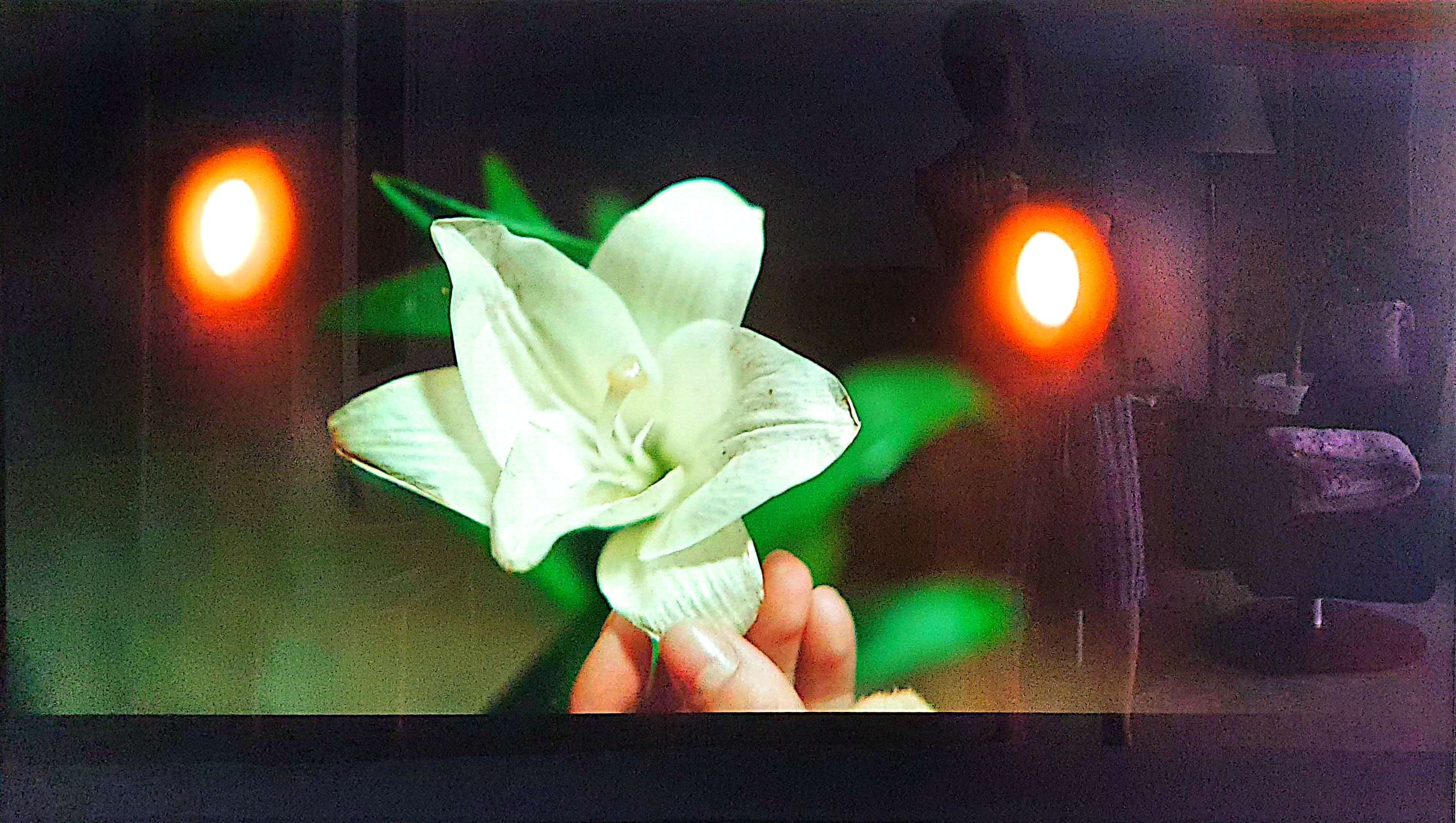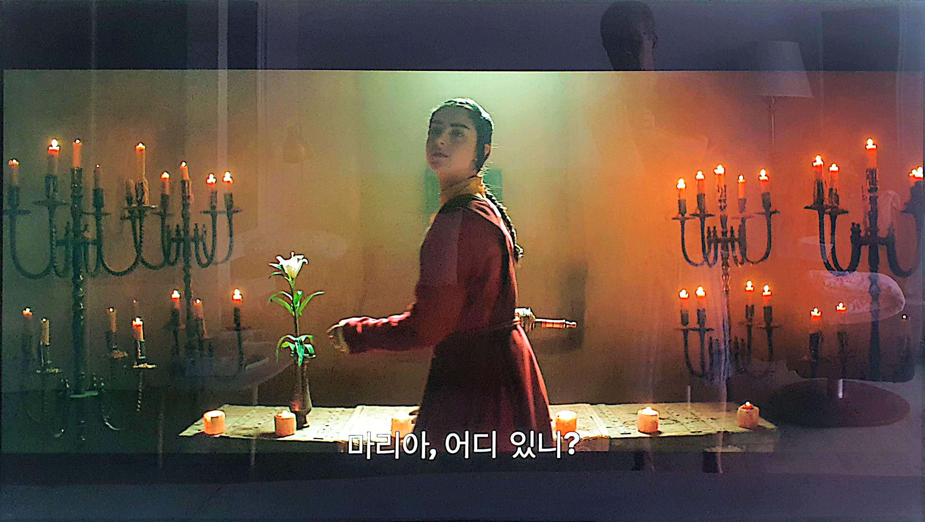 영화 <마리아>에서 마리아는 꽃병에 꽂힌 백합을 어루만졌다. 곧 있을 '무염시태'를 암시하는 듯하다.