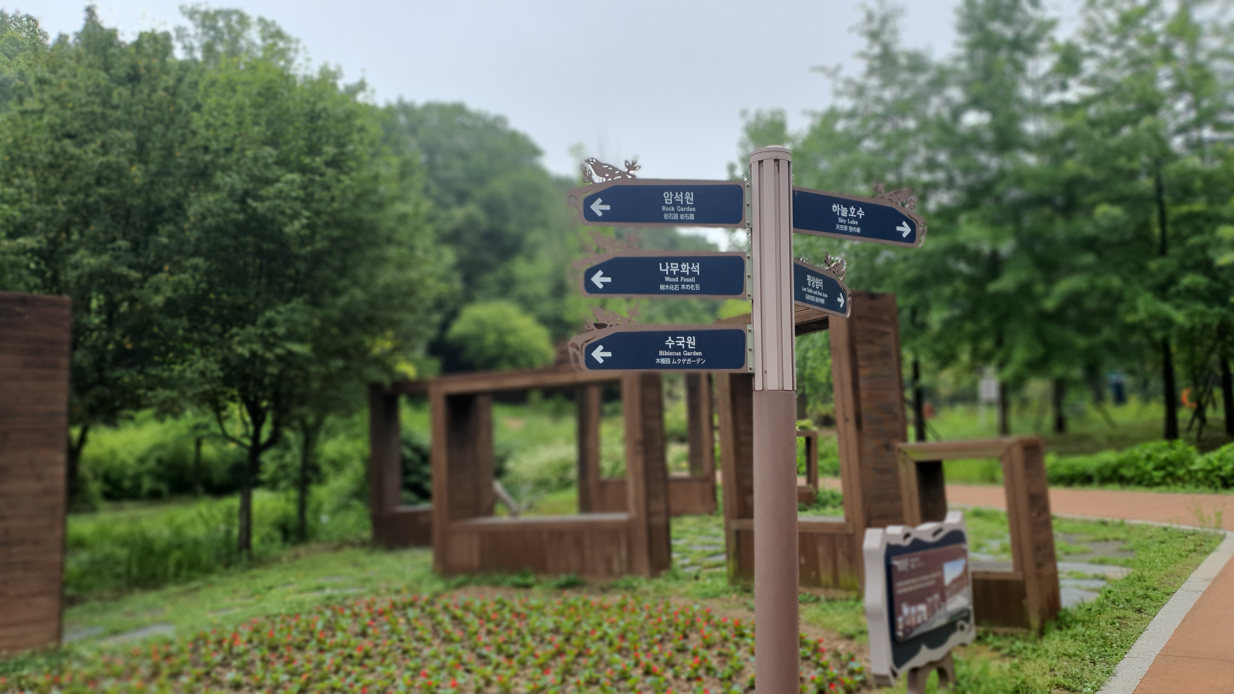 농경유물전시관은 민속촌의 초가집 처럼 조성되었지만 지금은 출입이 금지되어 있고, 자연생태박물관과 부천식물원은 실내공간이며 입장료가 별도로 요구되어서 다음에 들리기로 하고 녹음이 우거진 수목원으로 들어갔다. 무장애 '누구나숲길'을 산책하기로 했다.