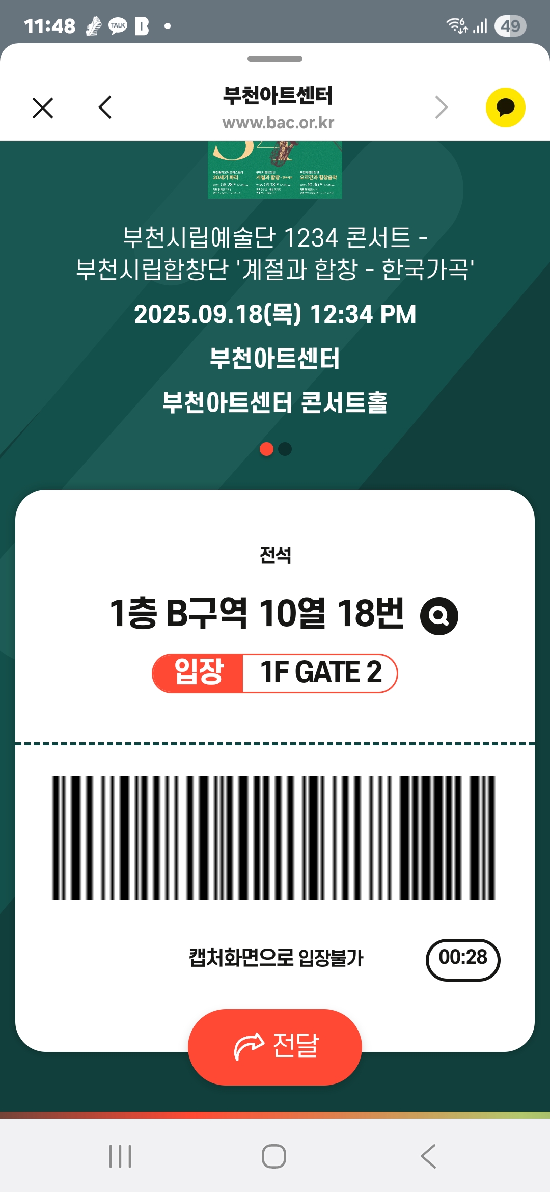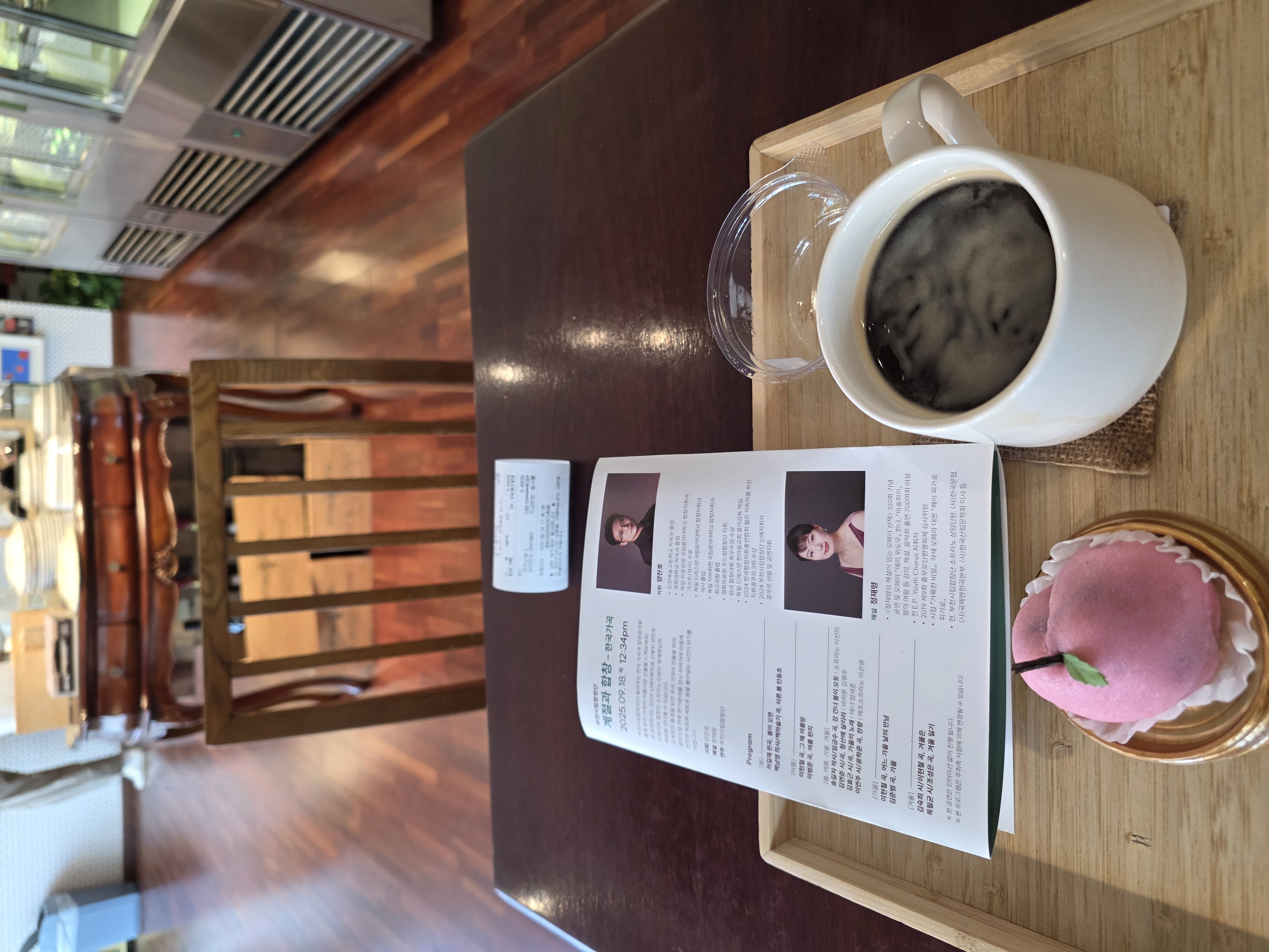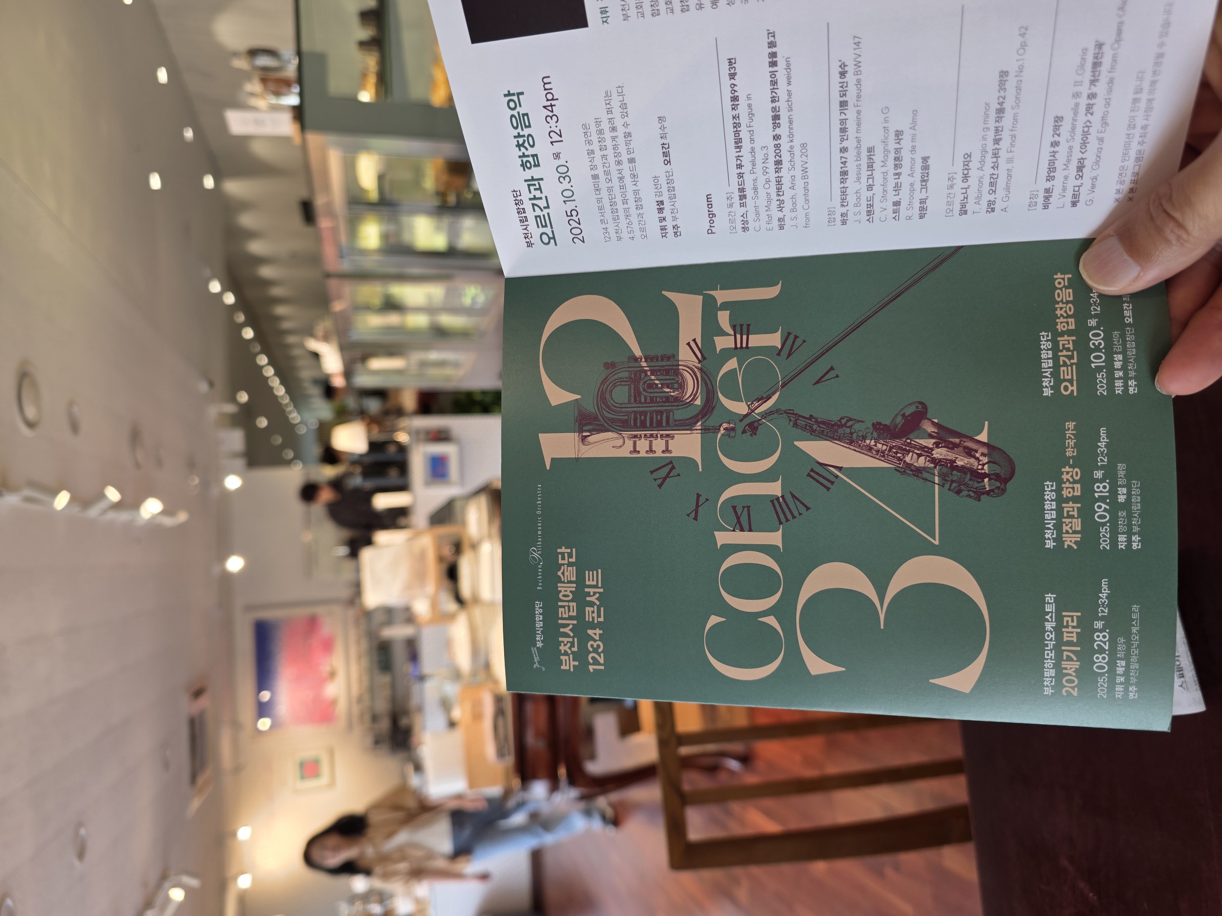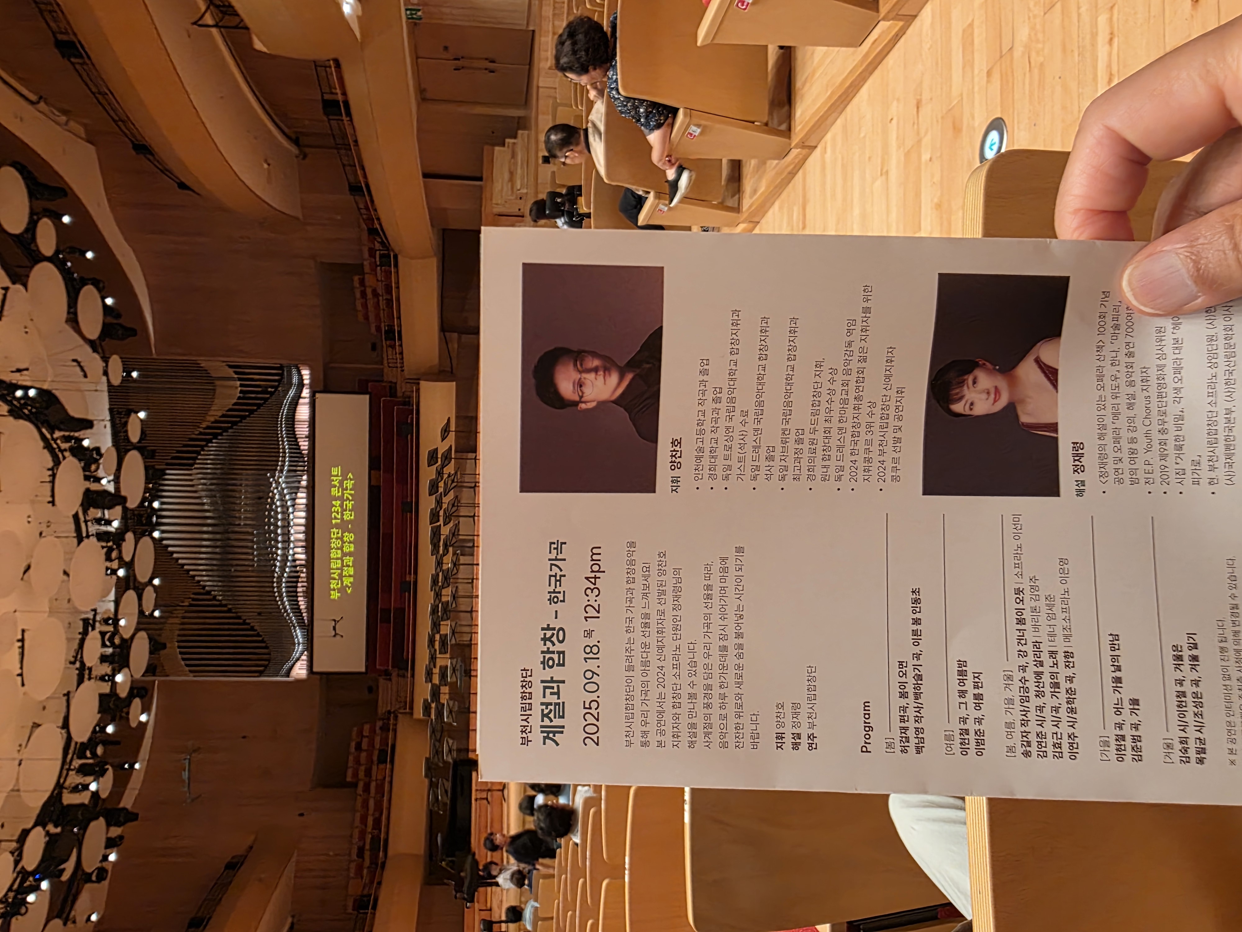 한 두장의 티켓 종이도 아껴 환경을 보호하고자, 모바일티켓을 발권하여 입장했다. 아내의 빈자리에 크로스백을 풀어놓고 부득이 주어진 프로그램 팜플렛을 읽는다.