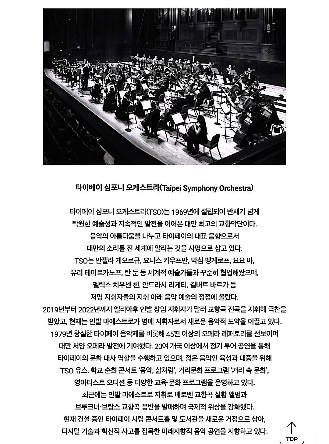 50여 년 이상의 역사를 자랑하는 대만 최고(最古)·최대 교향악단, 타이베이 심포니 오케스트라의 창단 이래 첫 내한 공연