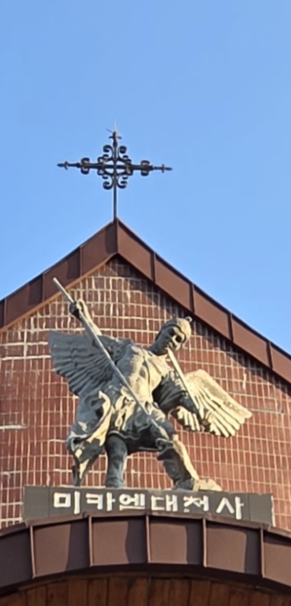 수원성지 본당은 주보 성인으로 미카엘 대천사를 모셨다. 성전 지붕 맨 꼭대기에 십자가가 있고 바로 아래에 미카엘 대천사가 창칼을 들고 성전입구를 지키고 있다.