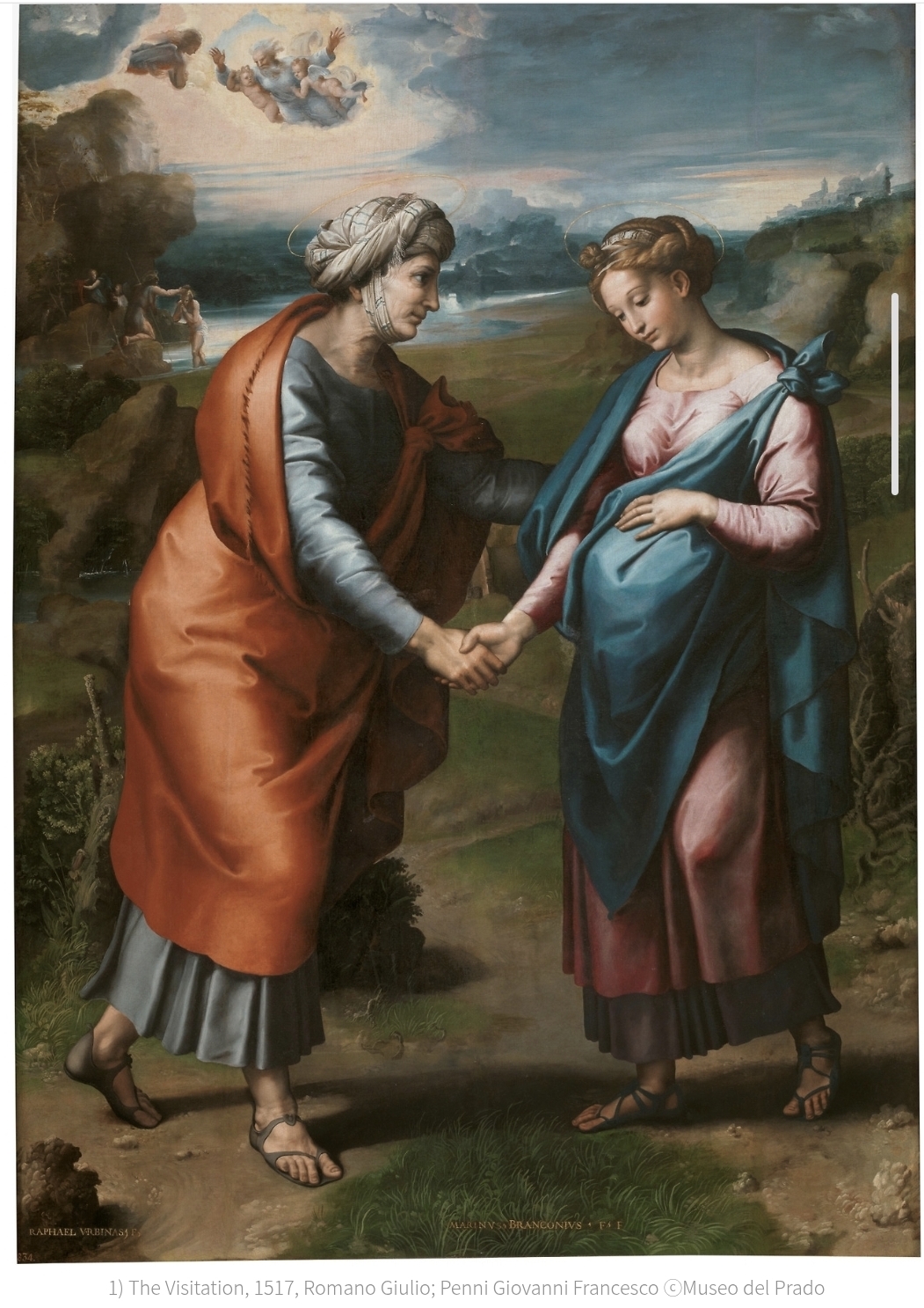 마리아와 엘리사벳이 만났을 때, 요한은 어머니 배 속에 있었음에도 이미 예수를 알아보고 기뻐하며 맞이했다고 합니다. 그래서인지 성화 중에 는 어린 예수와 요한이 사이좋게 노는 장면을 그린 것이 많습니다.(1)