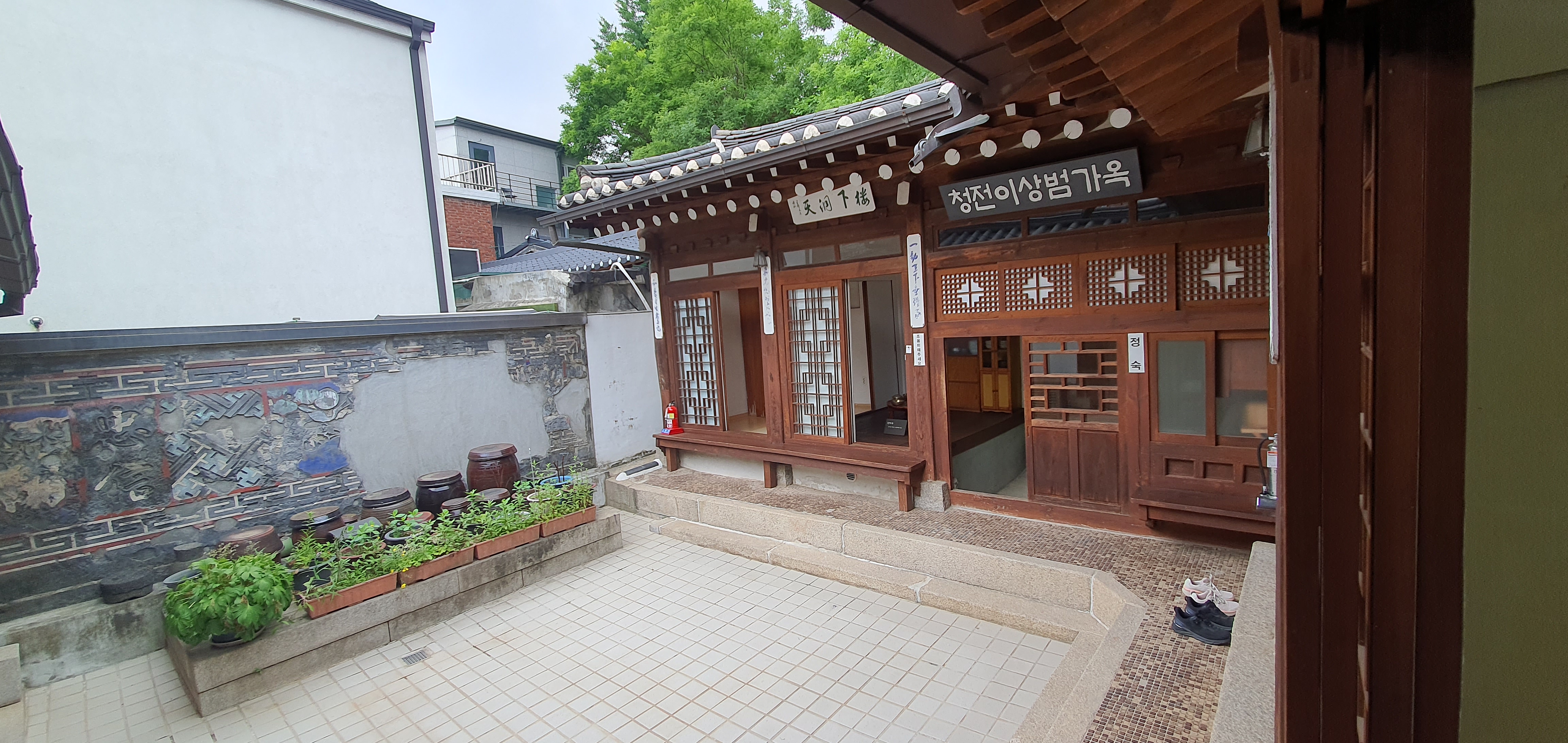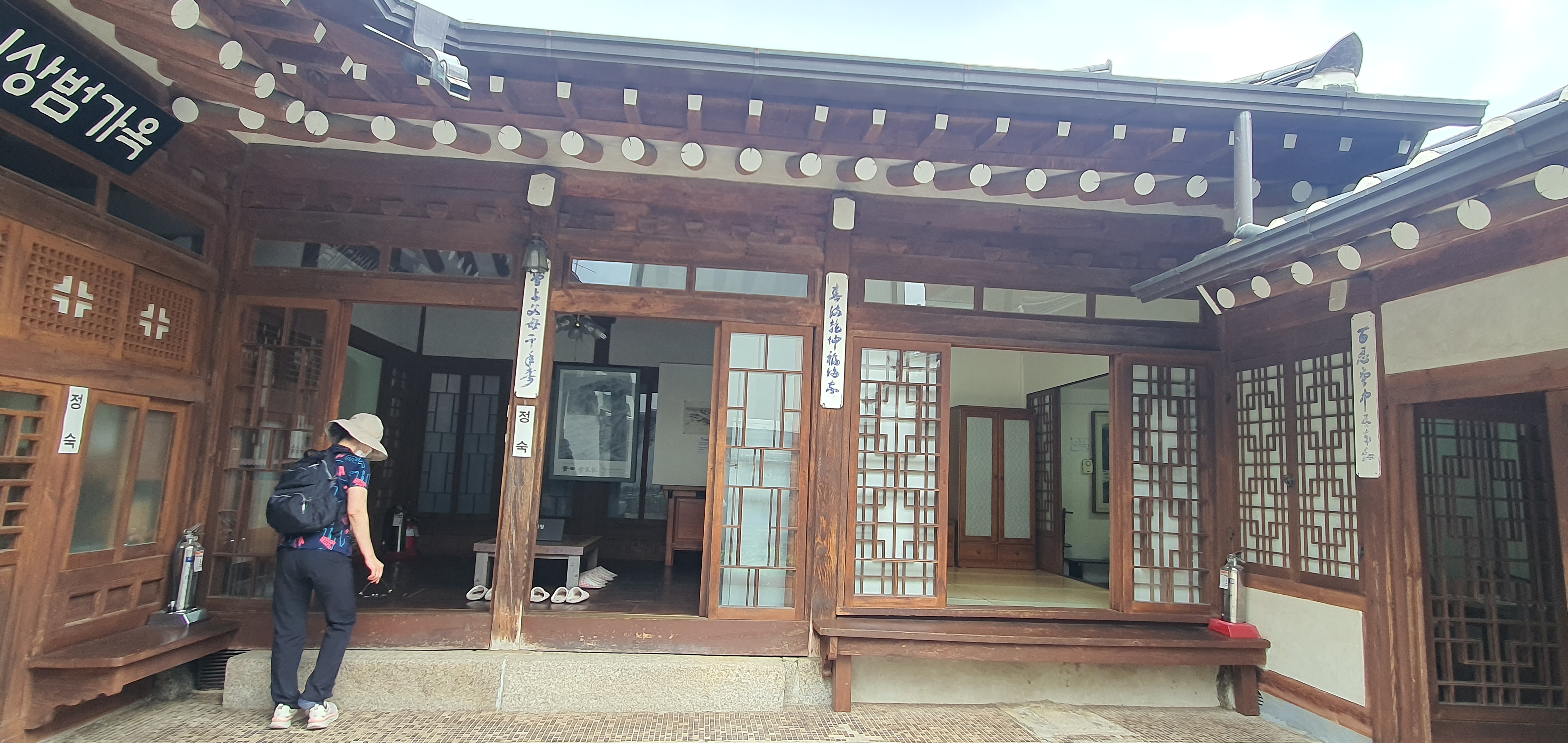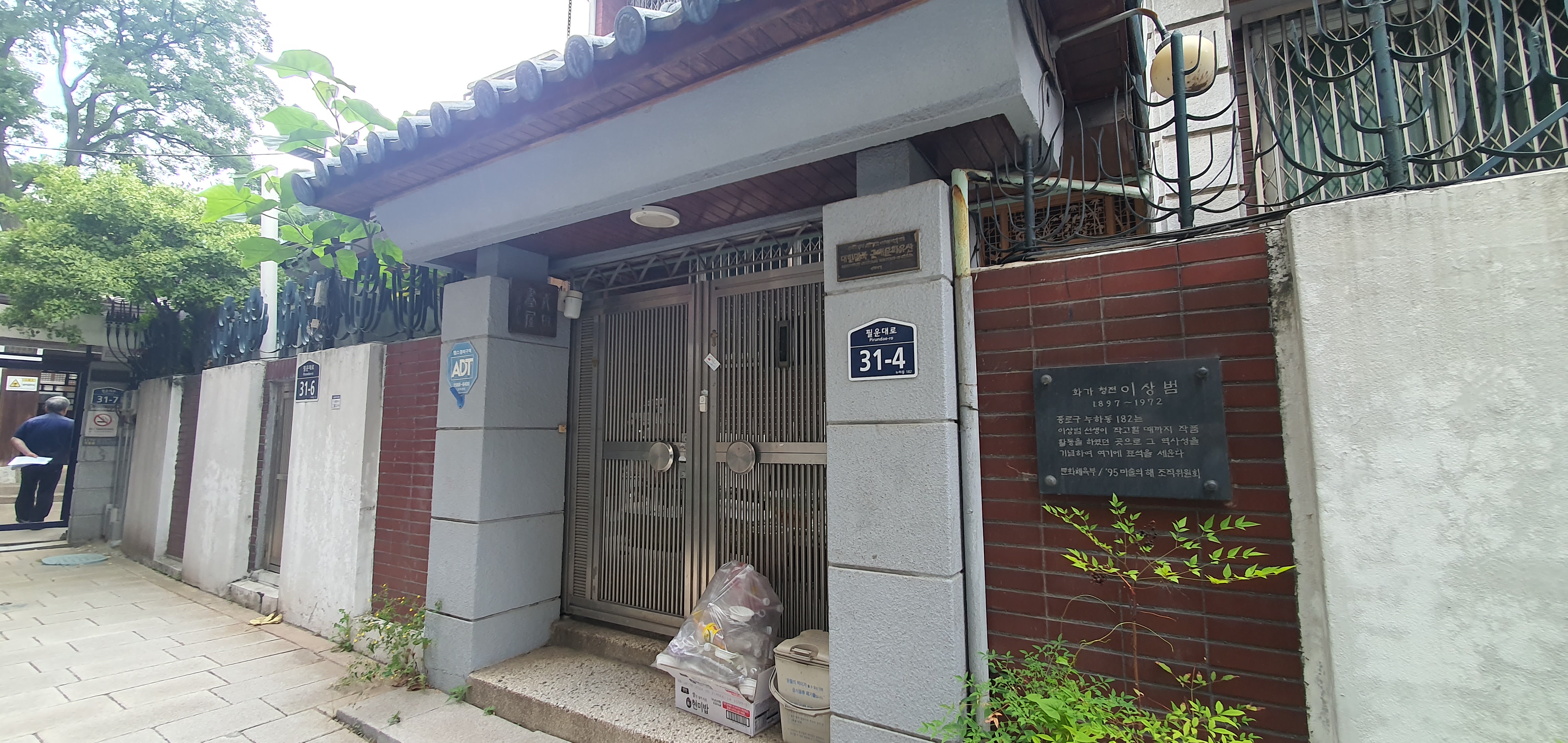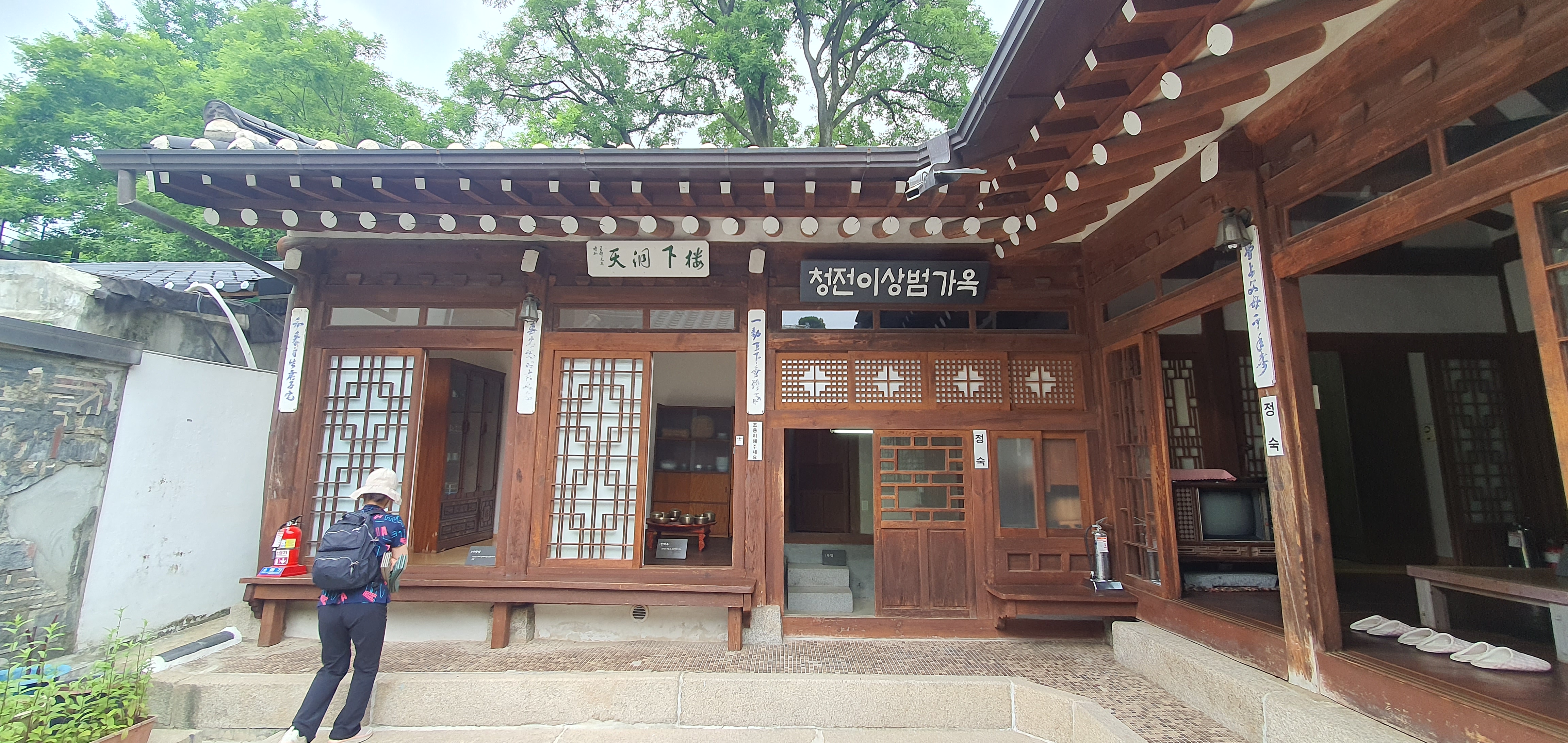 2023.06.08 다시 찾은 이상범가옥. 이상범 가옥 현판을 처마밑에 달아두었다. ㄱ자구조의 안채에 부엌에 달린 찬마루도 관심있게 보고. ㅡ자 구조의 바깥채, 이상범 화백의 화실을 열어둔 창밖에서 들여다 볼 수 있었다. 서양의 부부인듯 연인이 해설자의 안내를 받으며 찾아왔다. 서촌길 관광이 외국인들에게도 많이 알려진 모양이다.