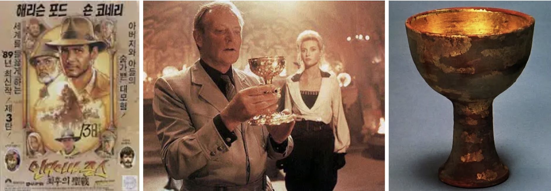 성배에 대한 낭만적인 상상력은 현대에까지 이어져 영화 <인디아나 존스-최후의 성전>도 성배 전설을 모티브로 제작되었습 니다. 그 영화 속의 성배 역시 우리가 상상할 수 없는 신비한 힘 을 가진 물건으로서 특히 질병 치유에 탁월한 효력이 있는 것으 로 나옵니다.