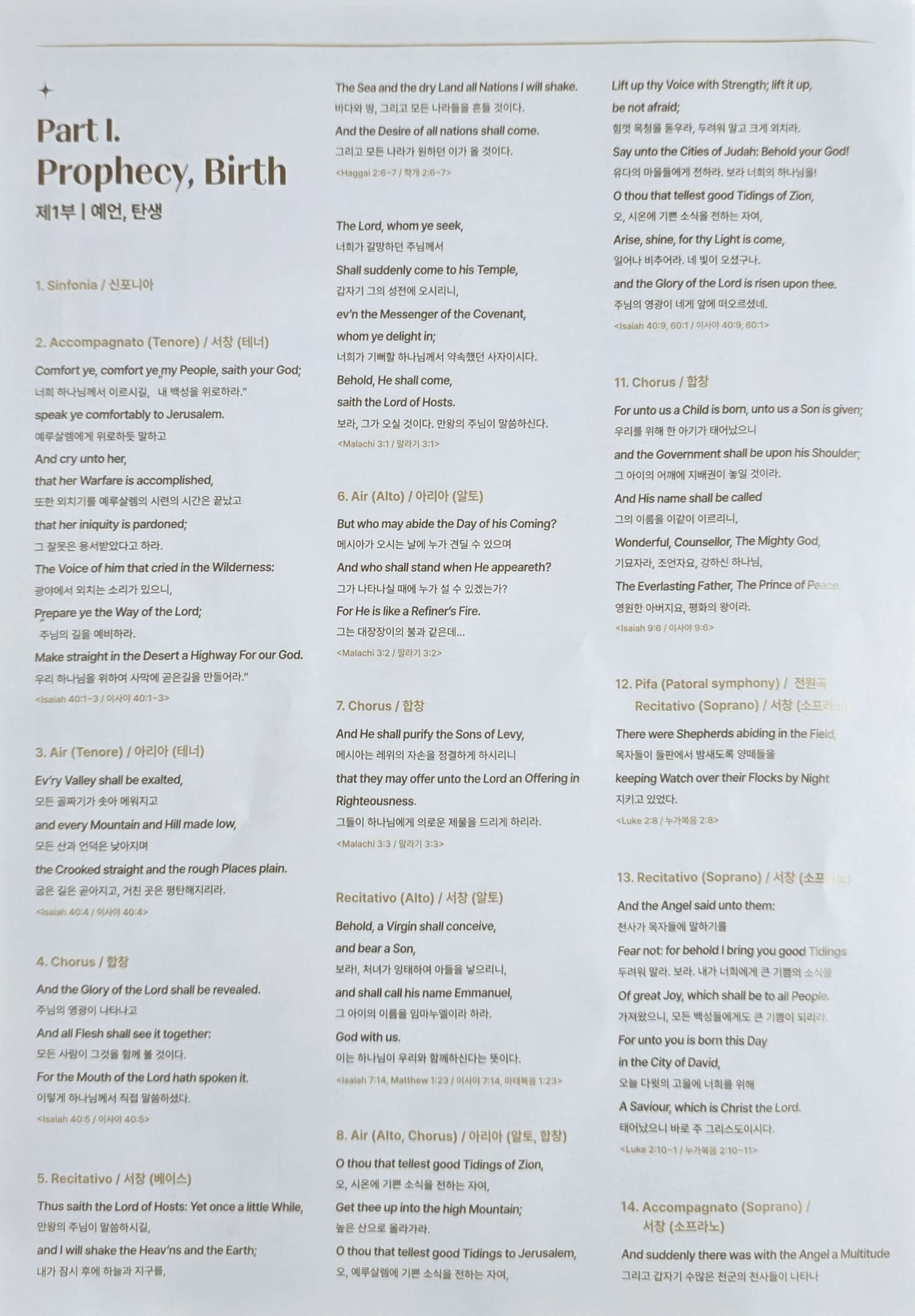 ㆍ매곡마다 박수치지 마시고, 3부로 구성된 <메시아>의 1부가 끝나면 박수를 보내주시고 휴식시간을 갖고 2, 3부가 모두 끝나면 박수를 부탁드린다.